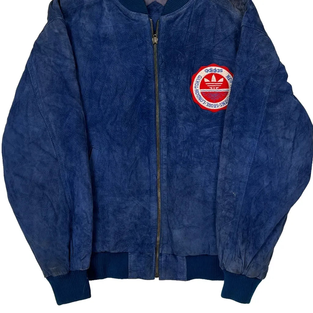 1980S Adidas Spellout Bomber Jacket - Small Blue Suede
