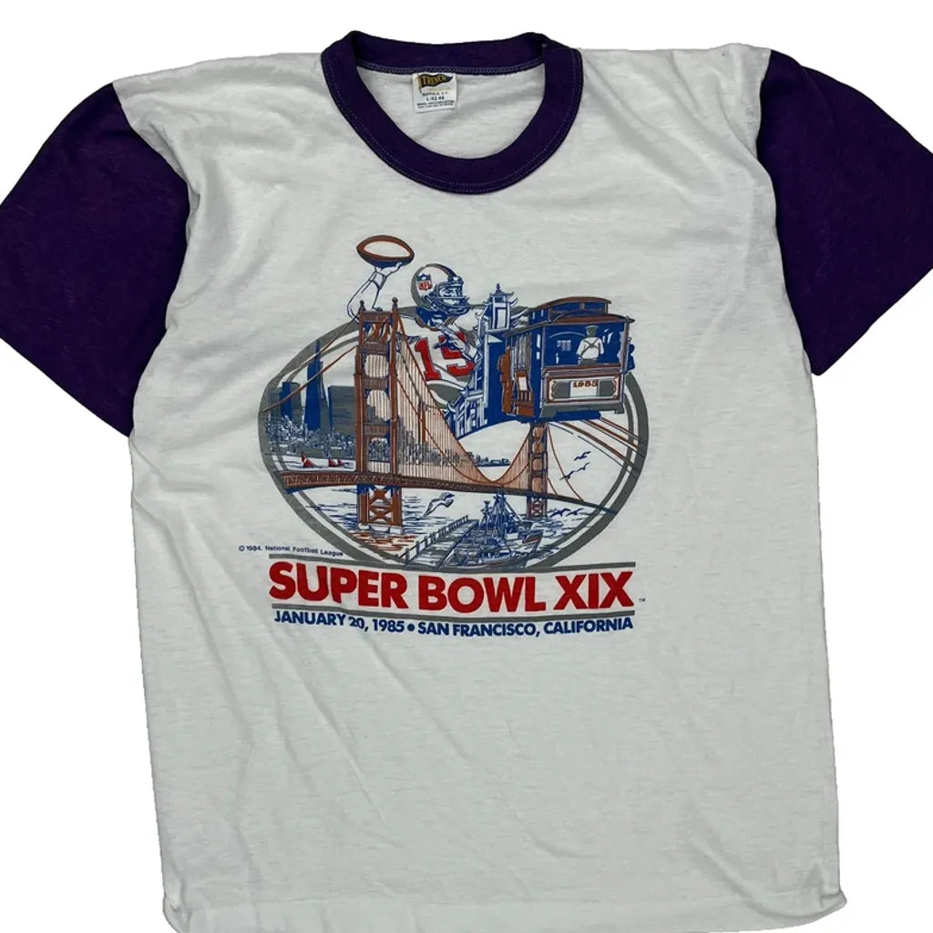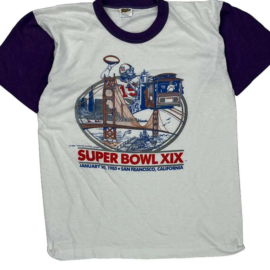 1985 Super Bowl Xix Trench Nfl T-Shirt - Large Purple Cotton Blend
