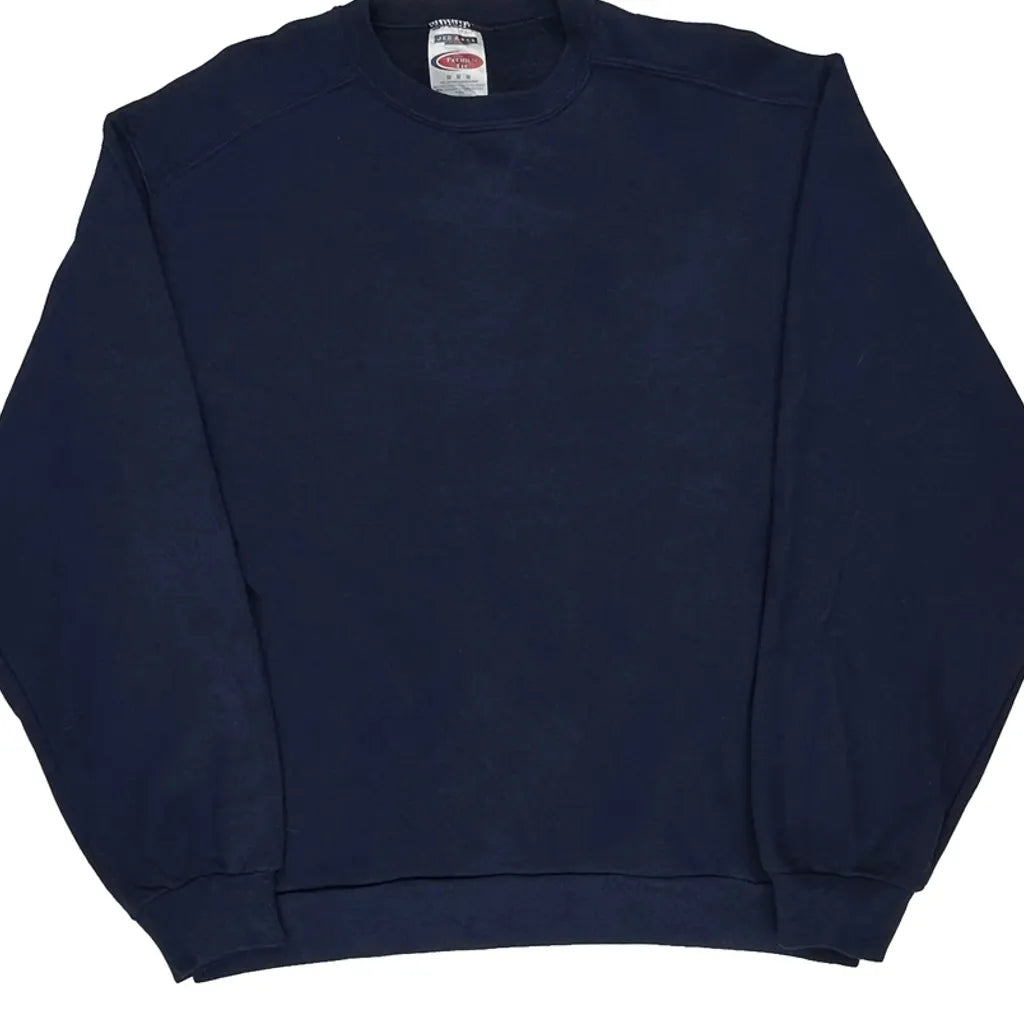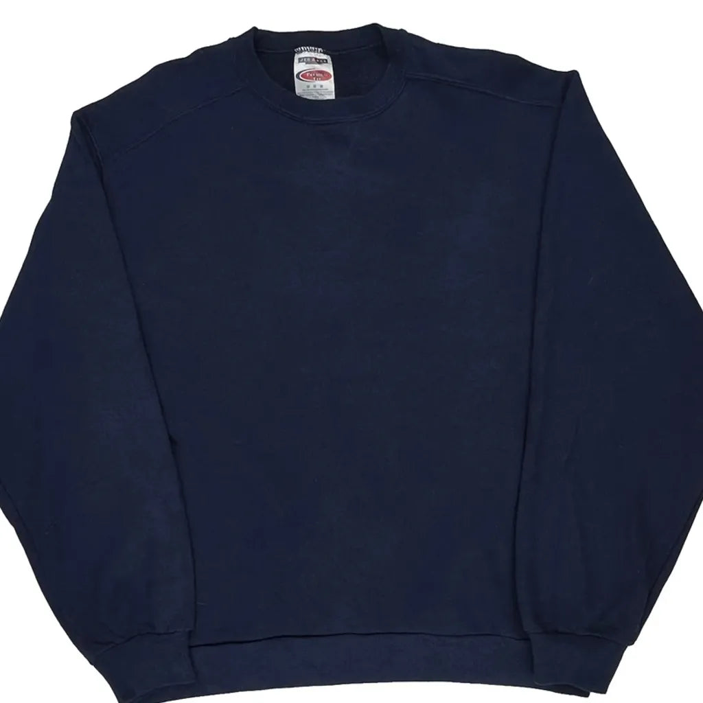 90S Blank Jerzees Sweatshirt - Medium Navy Cotton Blend