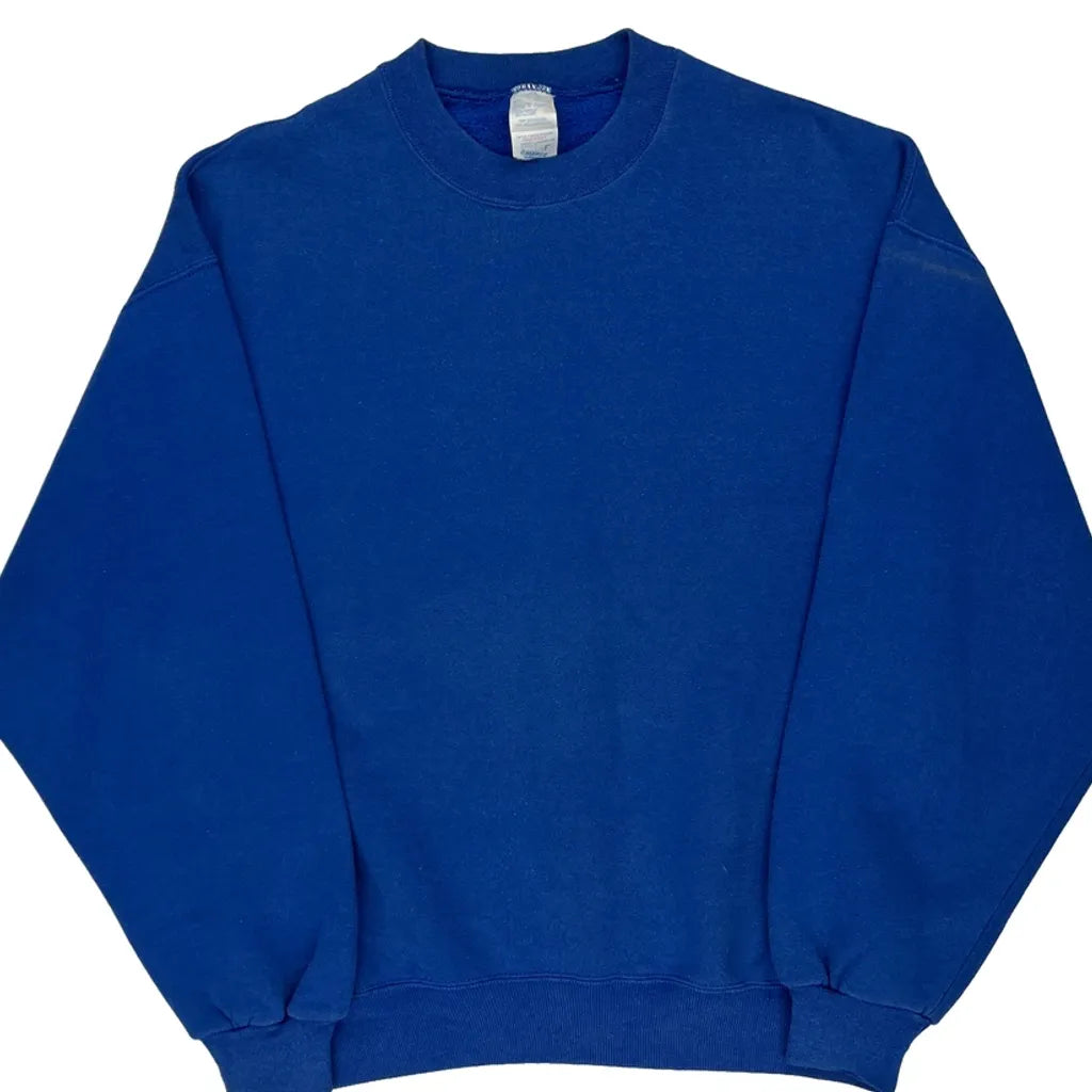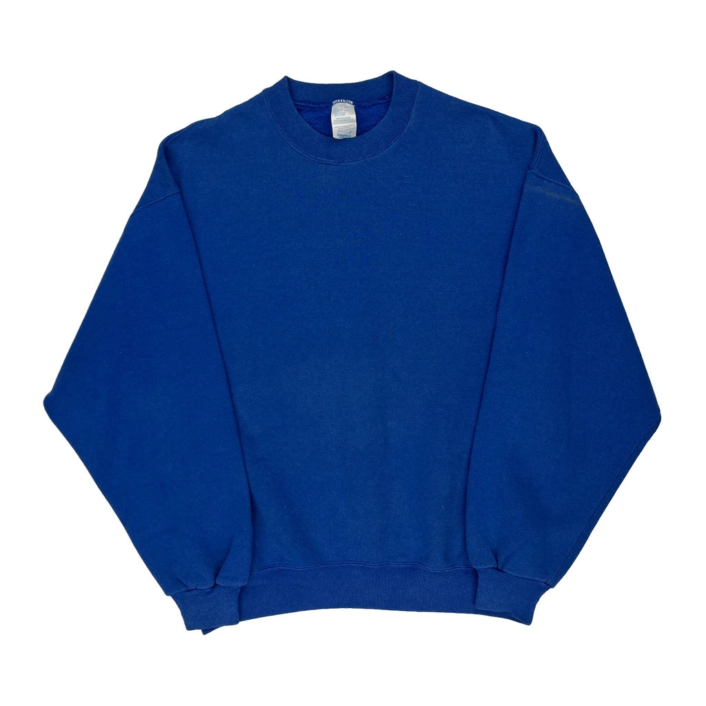 90S Blank Made In USA Jerzees Sweatshirt - Large Blue Cotton Blend