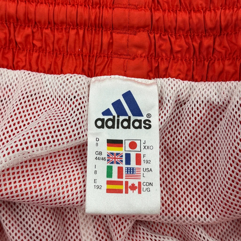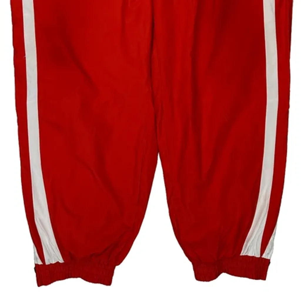 Red Adidas Tracksuit Bottoms With White Stripes.