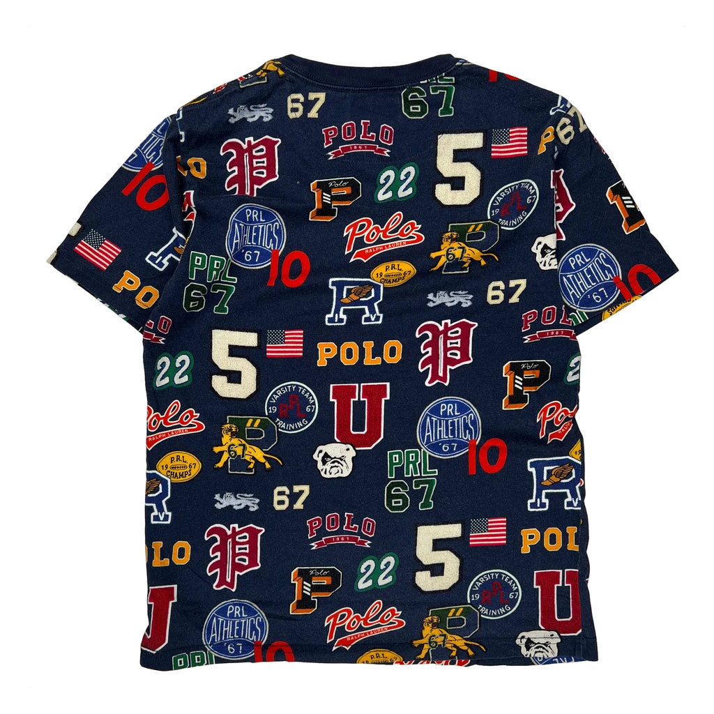 Navy Blue T-Shirt With Multicolored Varsity Graphics