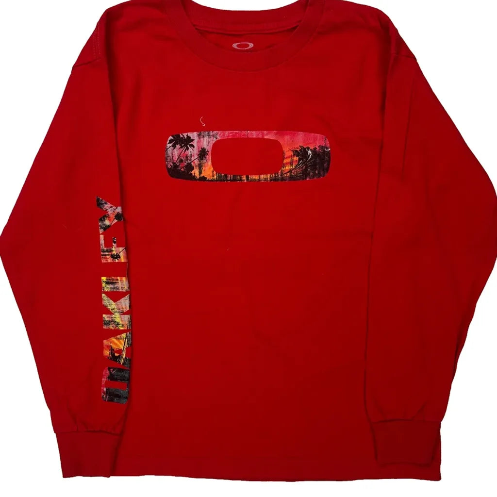 Red Long Sleeve T-Shirt With Oakley Logo And Palm Tree Design