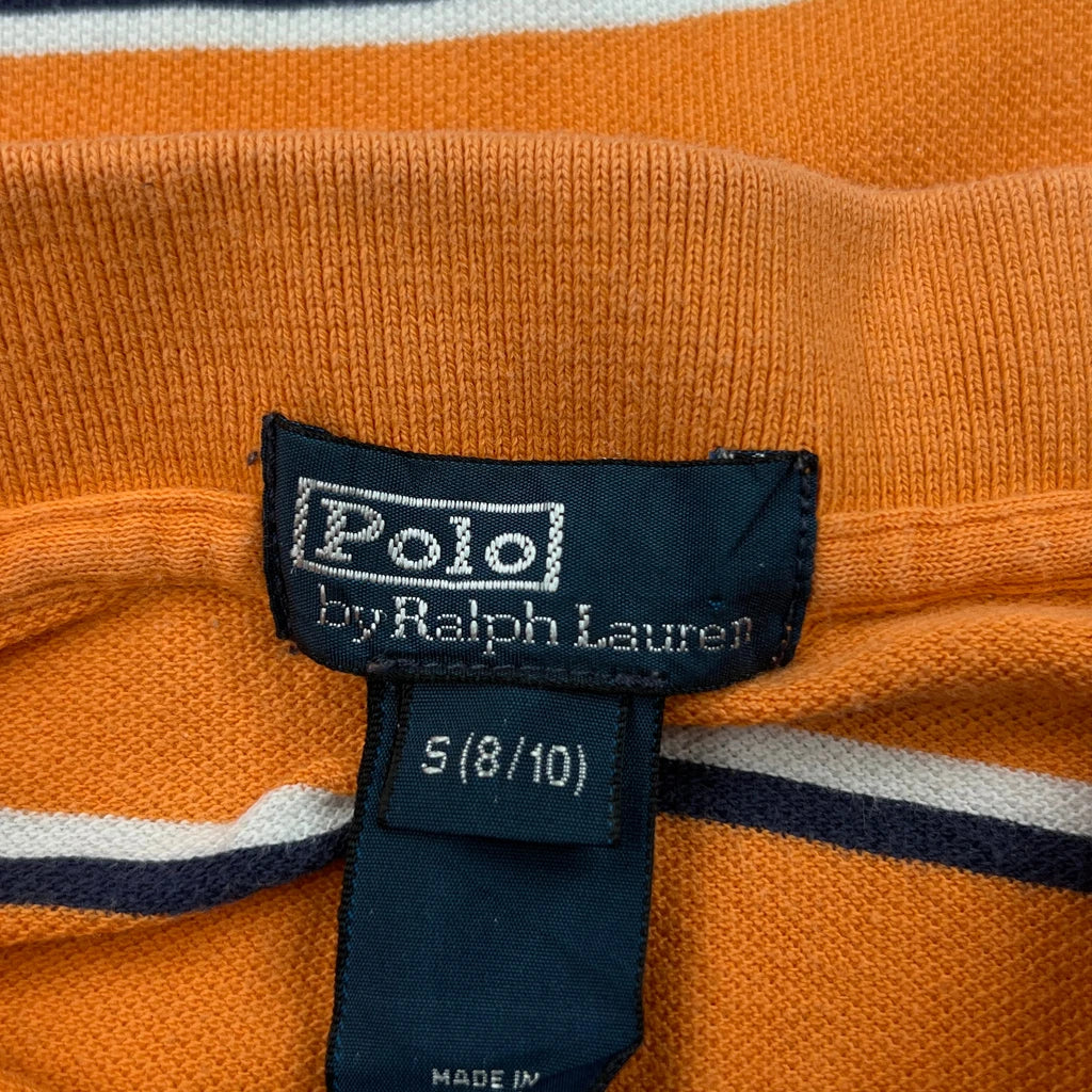 Age 6-8 Polo By Ralph Lauren Striped Polo Shirt - Small Orange Cotton