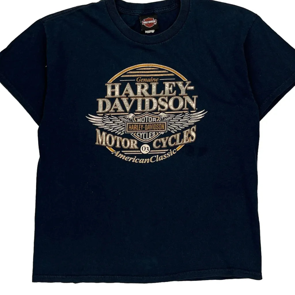 American Classic Harley Davidson Graphic T-Shirt - Large Navy Cotton