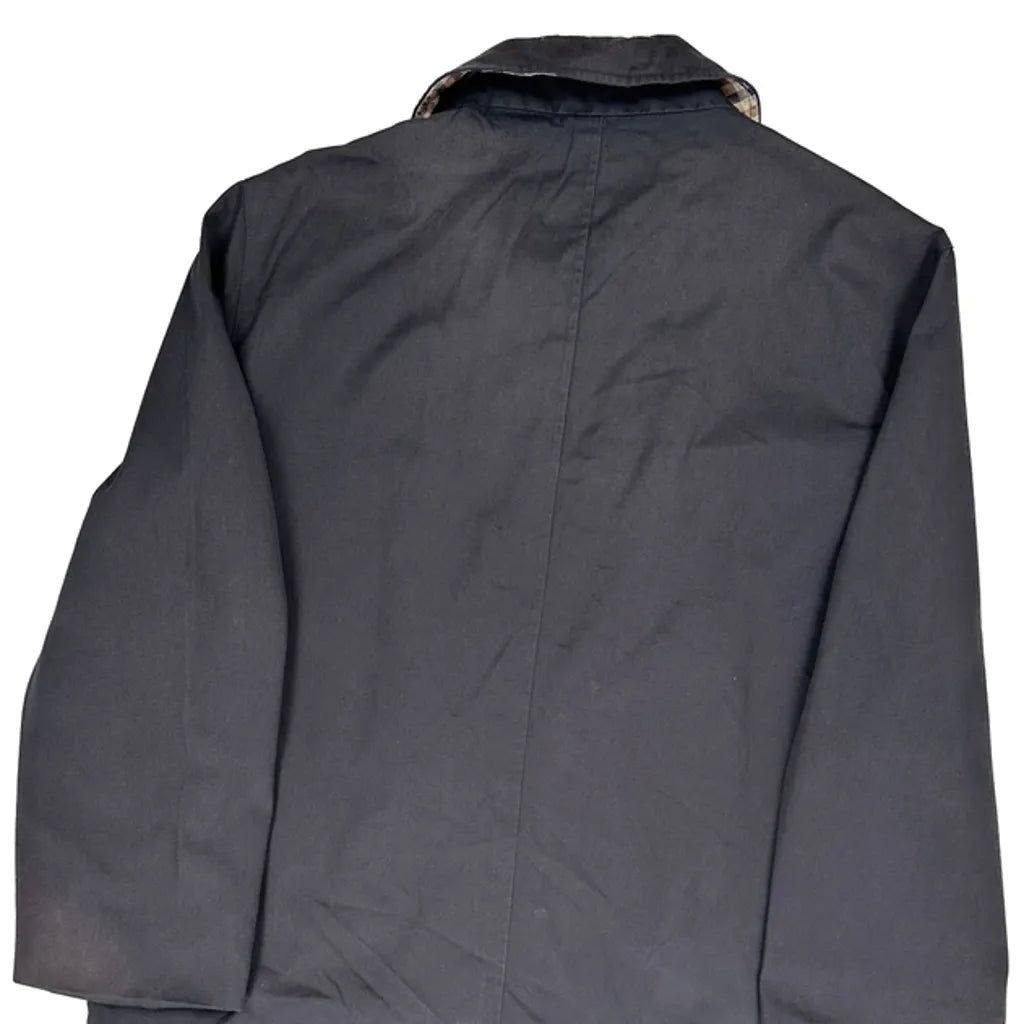 Classic Black Overcoat With Check Lining, No Visible Marks Or Faults.