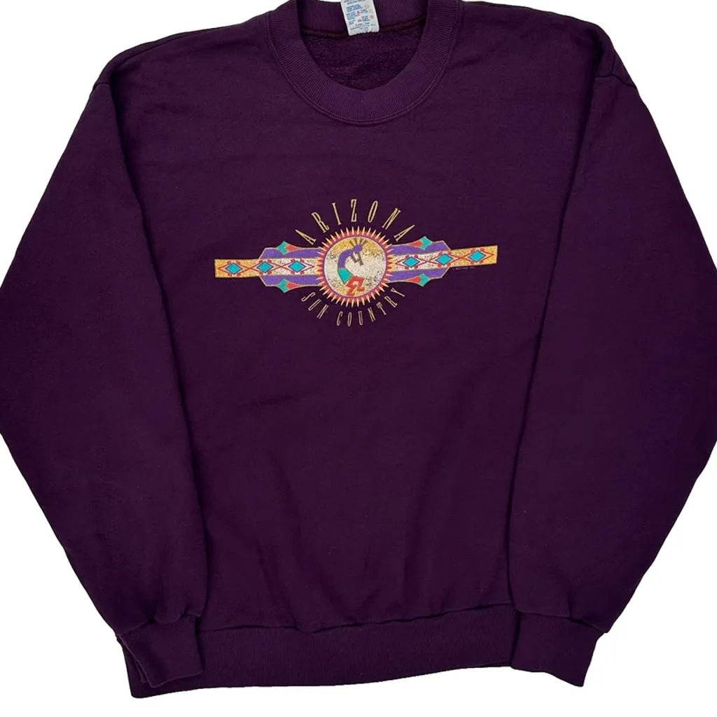 Arizona Sun Country, Made In USA Jerzees Graphic Sweatshirt - Large Purple Cotton