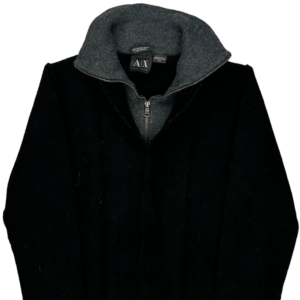 Armani Exchange Zip Up - Medium Black Merino Wool