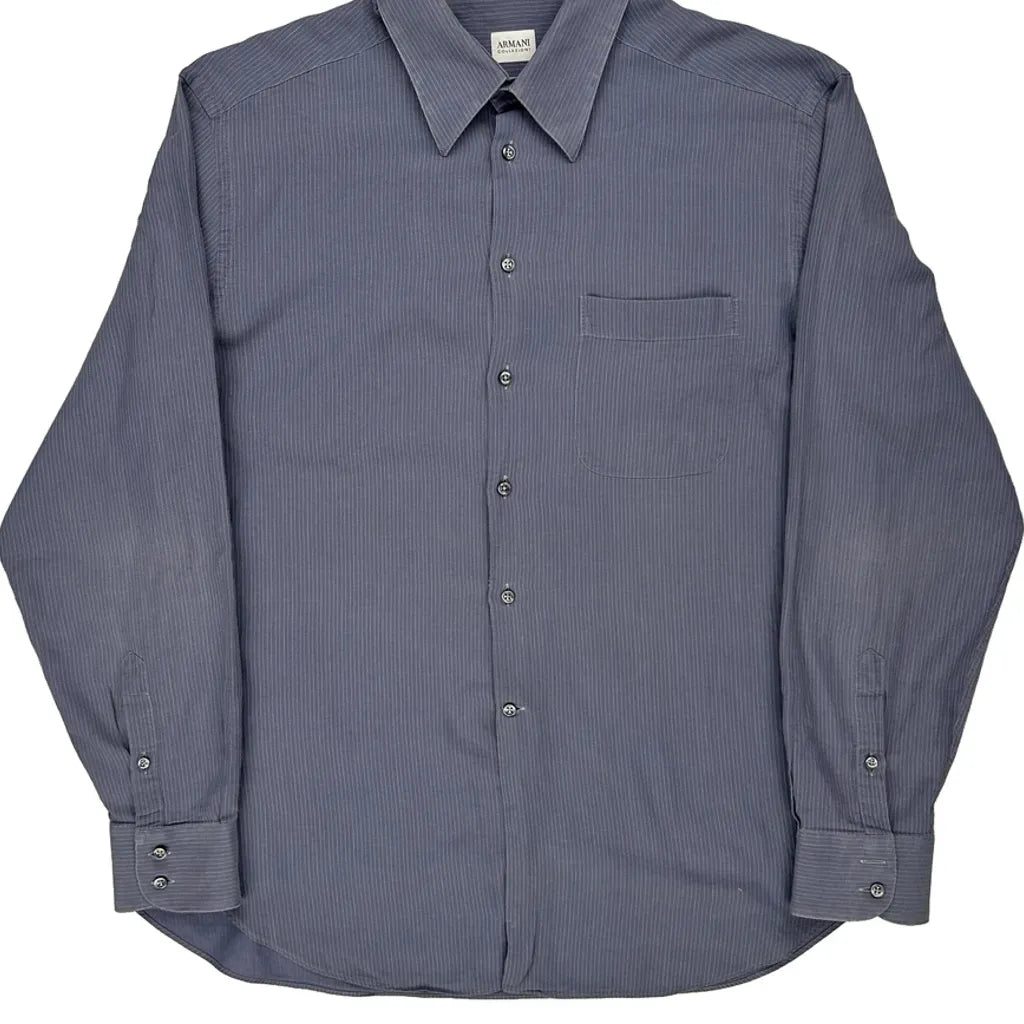 Armani Pinstripe Shirt - Large Blue Cotton