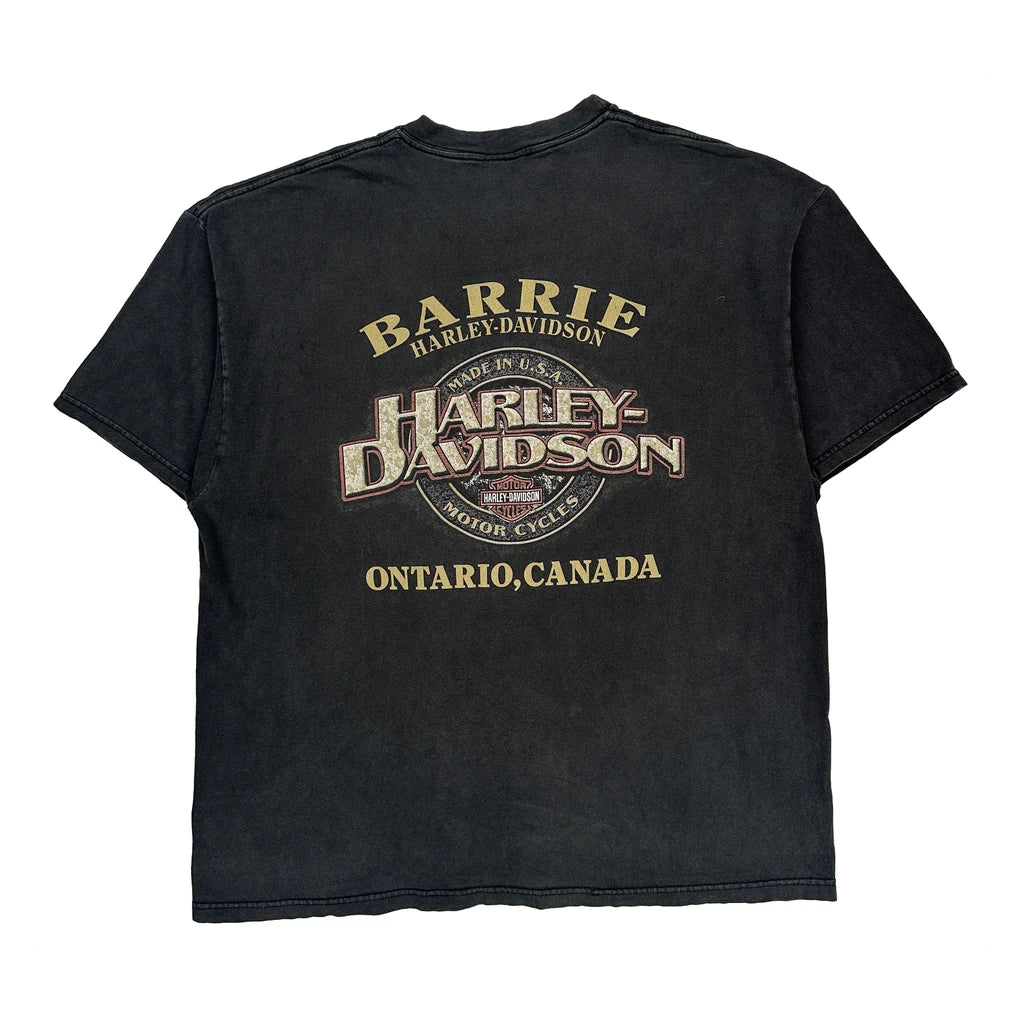 Barrie Ontario, Canada Harley Davidson Graphic T-Shirt - XL Black Cotton