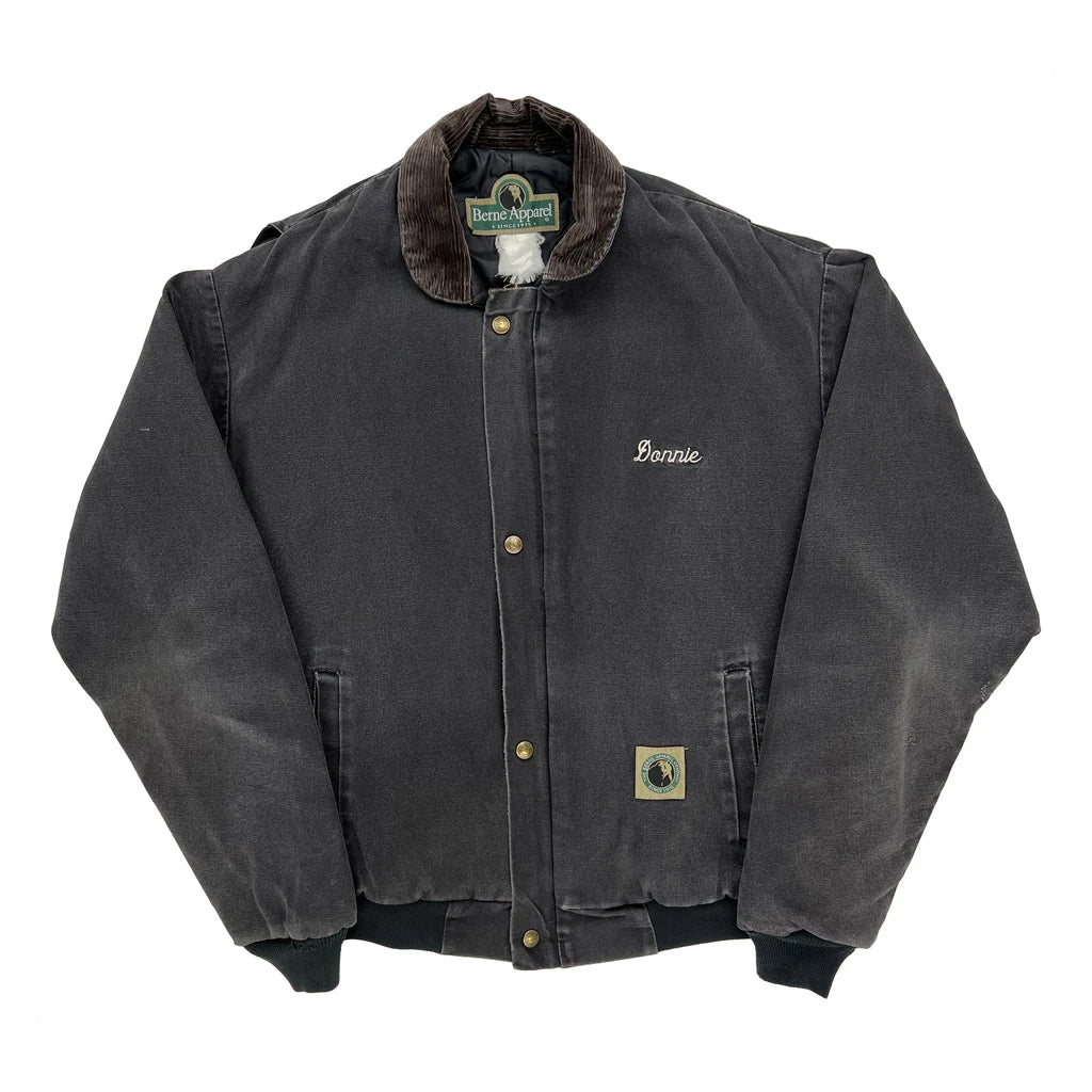 Berne Bomber Jacket With M & M Enterprises Embroidery. Slight Wear Visible.