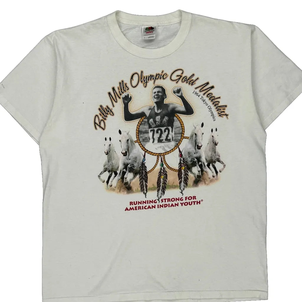 Billy Mills Olympic Gold Medalist Fruit Of The Loom Graphic T-Shirt - Large White Cotton