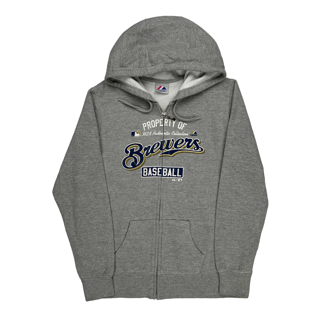 Milwaukee Brewers Hoodie With Zip, Plain Grey, Sporty And Casual.