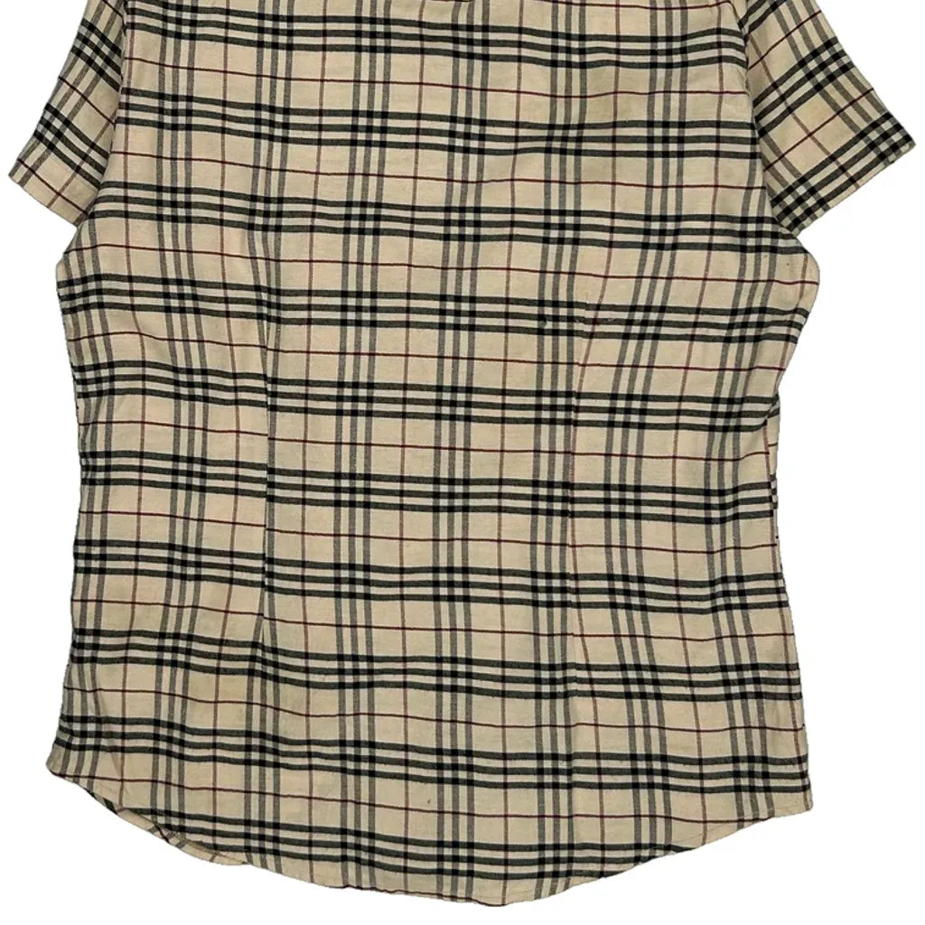 Burberry Checked Short Sleeve Shirt - Small Beige Cotton