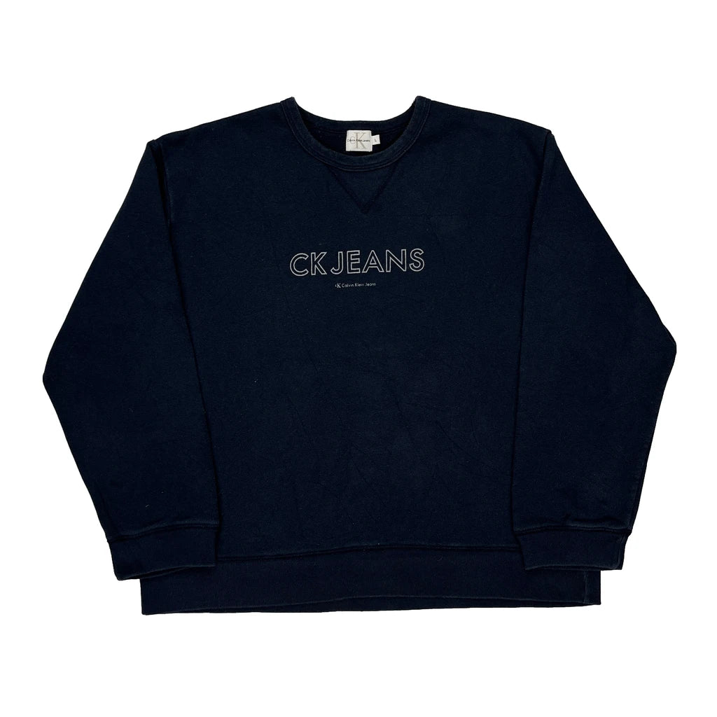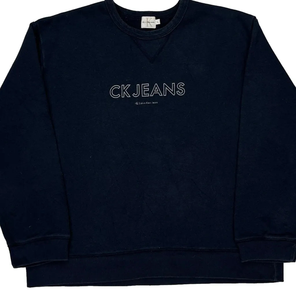 Calvin Klein Jeans Sweatshirt - Large Navy Cotton Blend