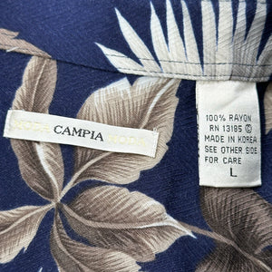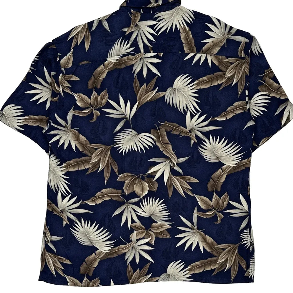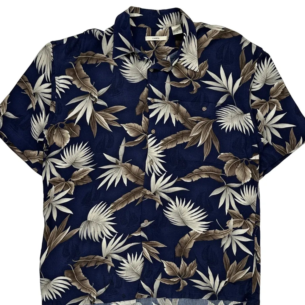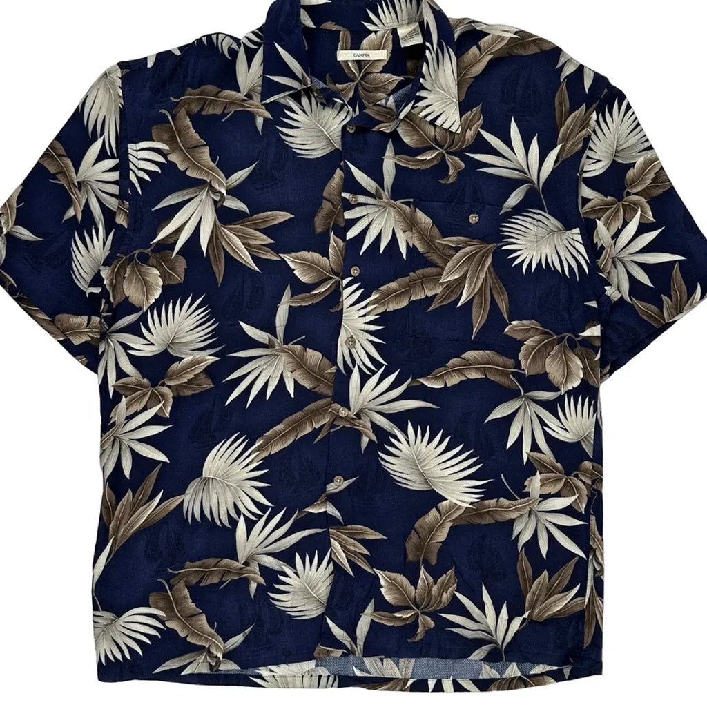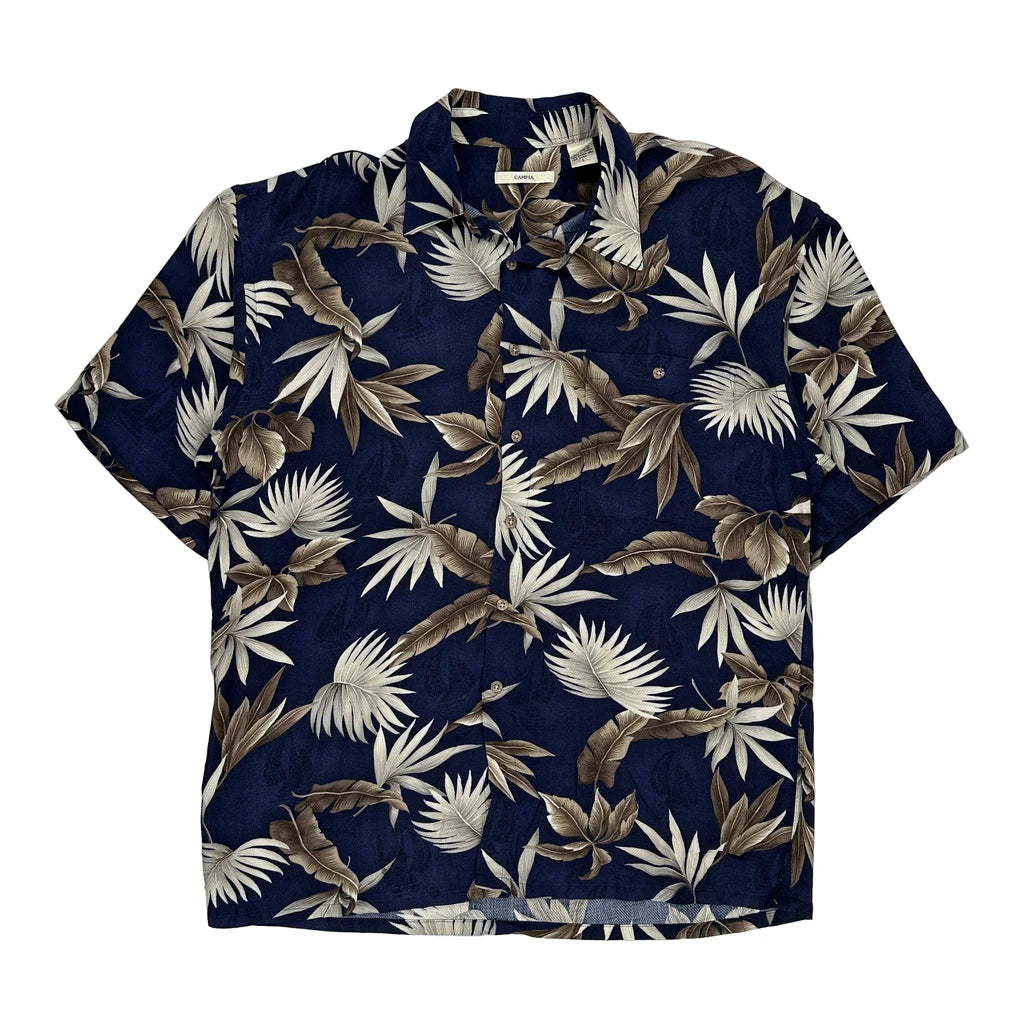 Campia Floral Hawaiian Shirt - Large Navy Viscose