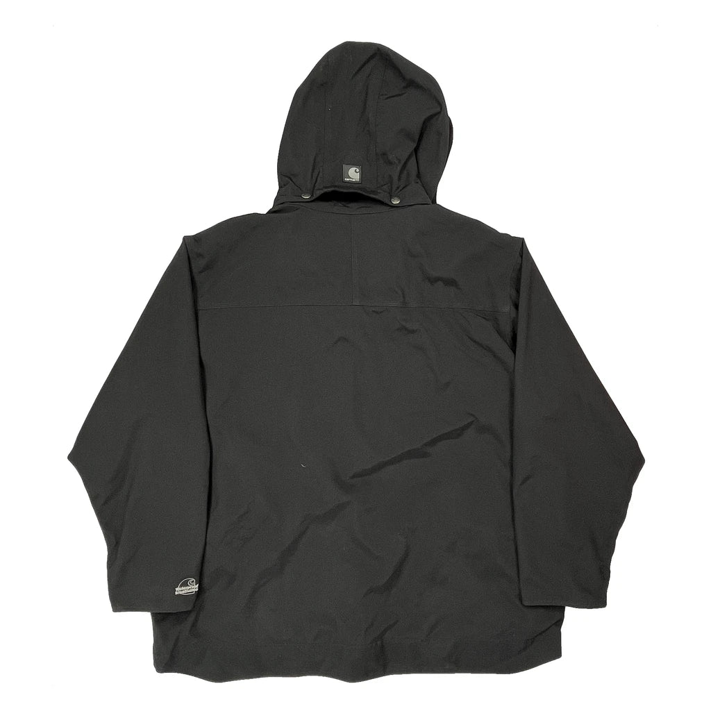Black Carhartt Parka With Hood And Multiple Pockets.