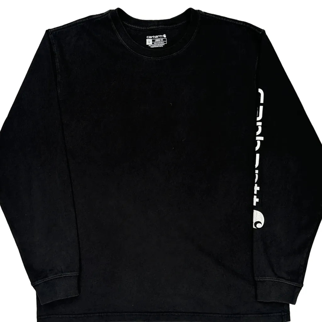 Carhartt Spellout Long Sleeve T-Shirt - Large Black Cotton