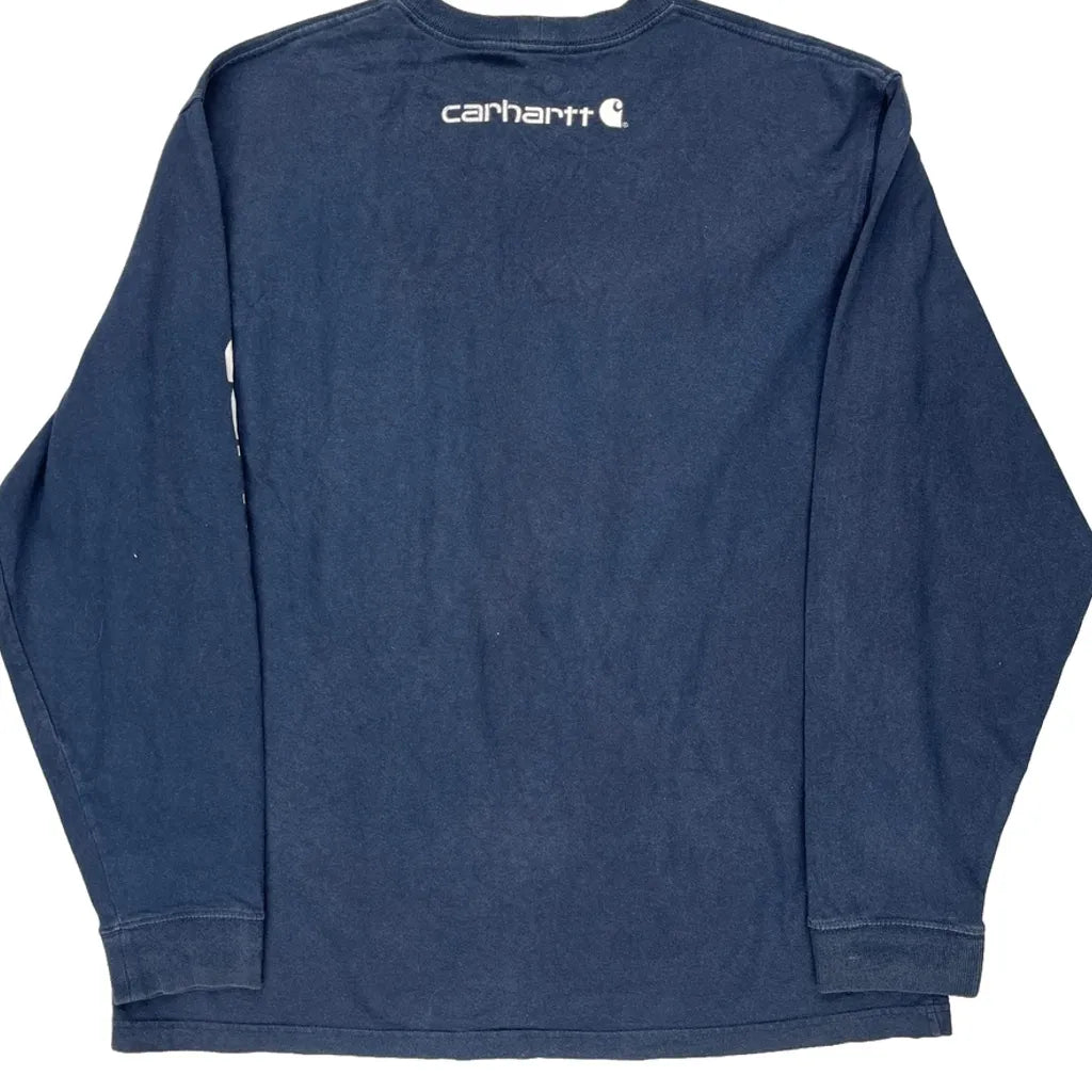 Carhartt Long Sleeve T-Shirt - Large Blue Cotton