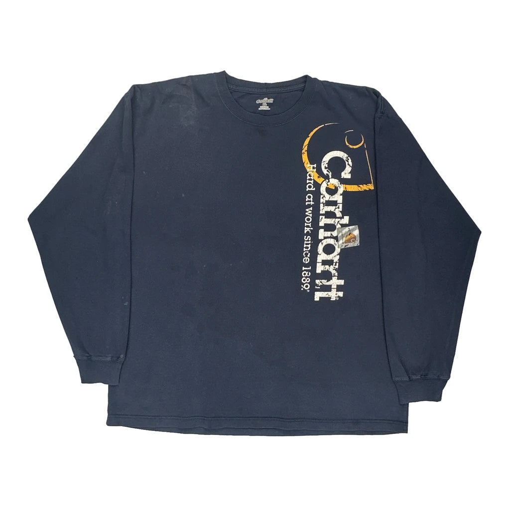 Carhartt Graphic Long Sleeve T-Shirt - XL Blue Cotton