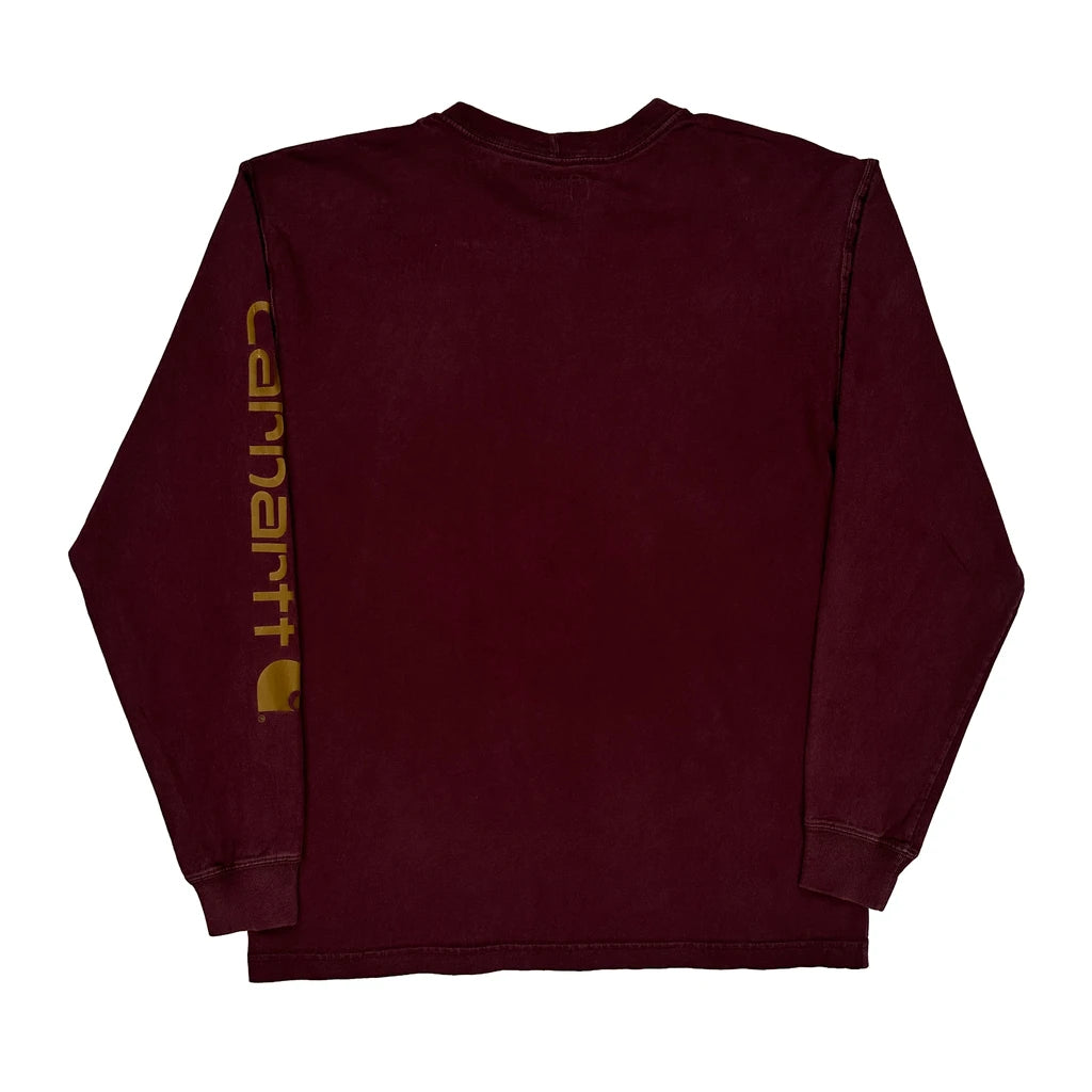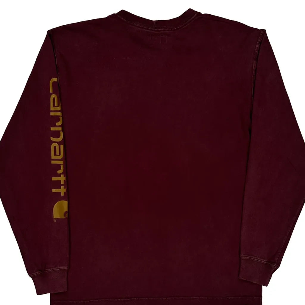 Carhartt Long Sleeve T-Shirt - Small Burgundy Cotton