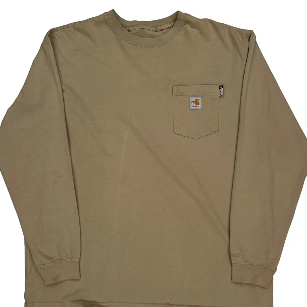 Carhartt Tall Long Sleeve T-Shirt - 2XL Khaki Cotton