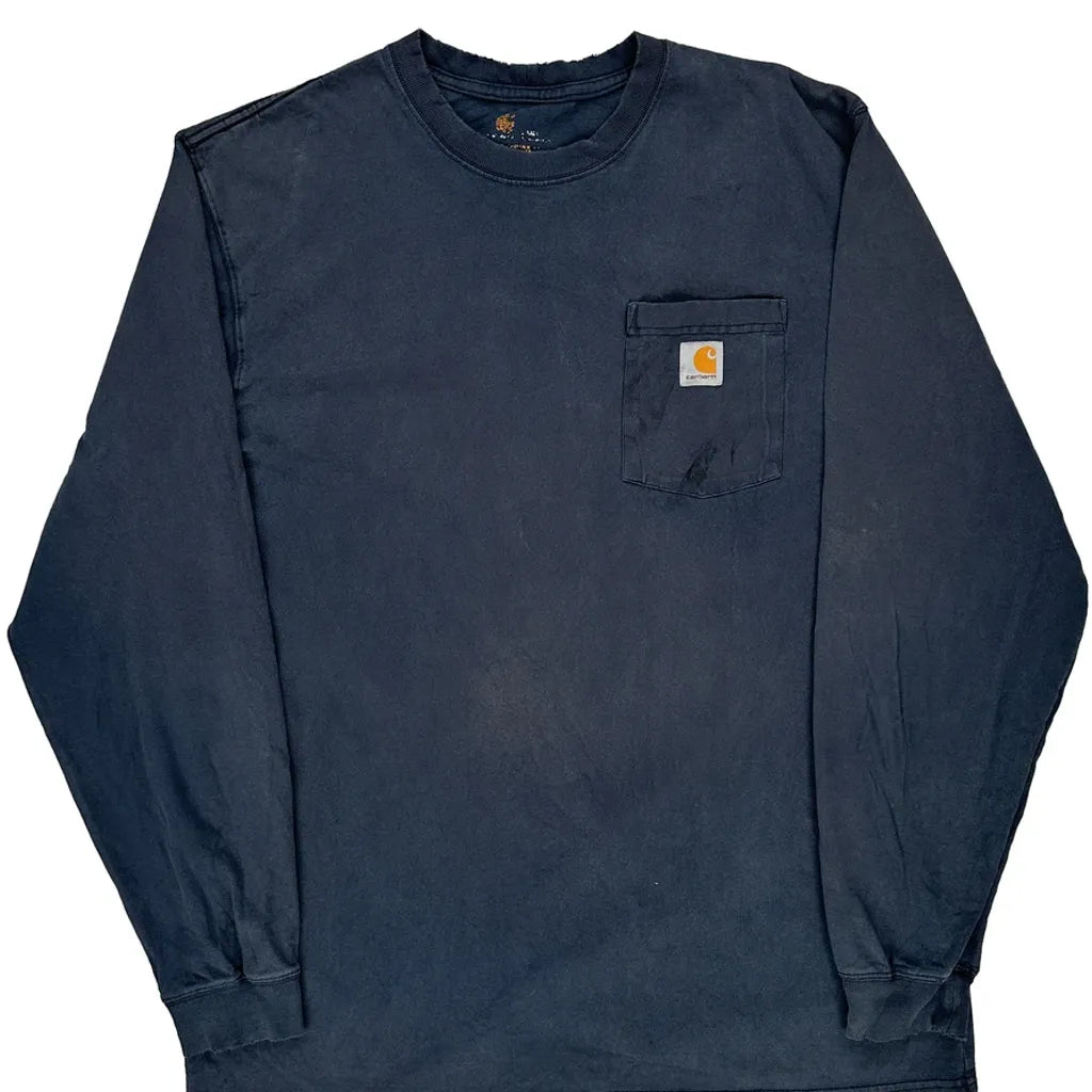 Carhartt Long Sleeve T-Shirt - Large Navy Cotton
