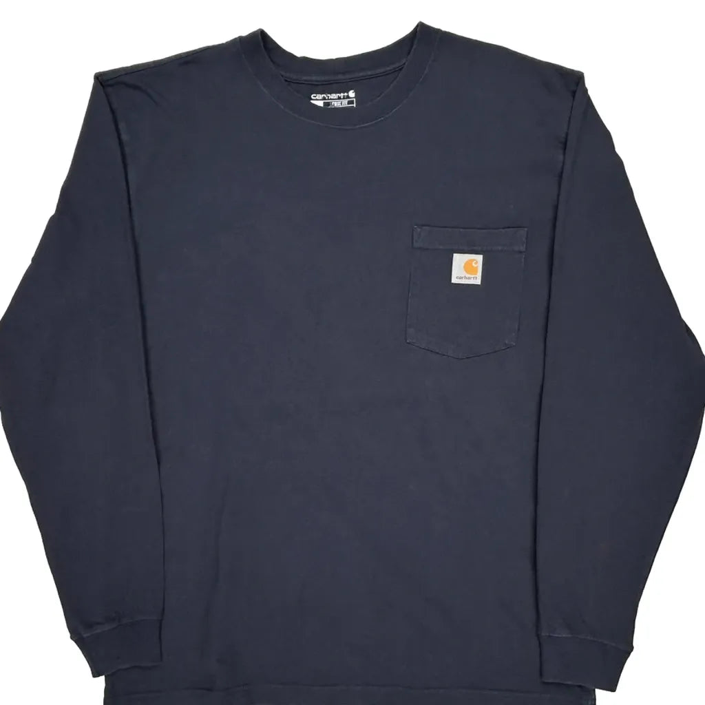 Carhartt Long Sleeve T-Shirt - Large Navy Cotton