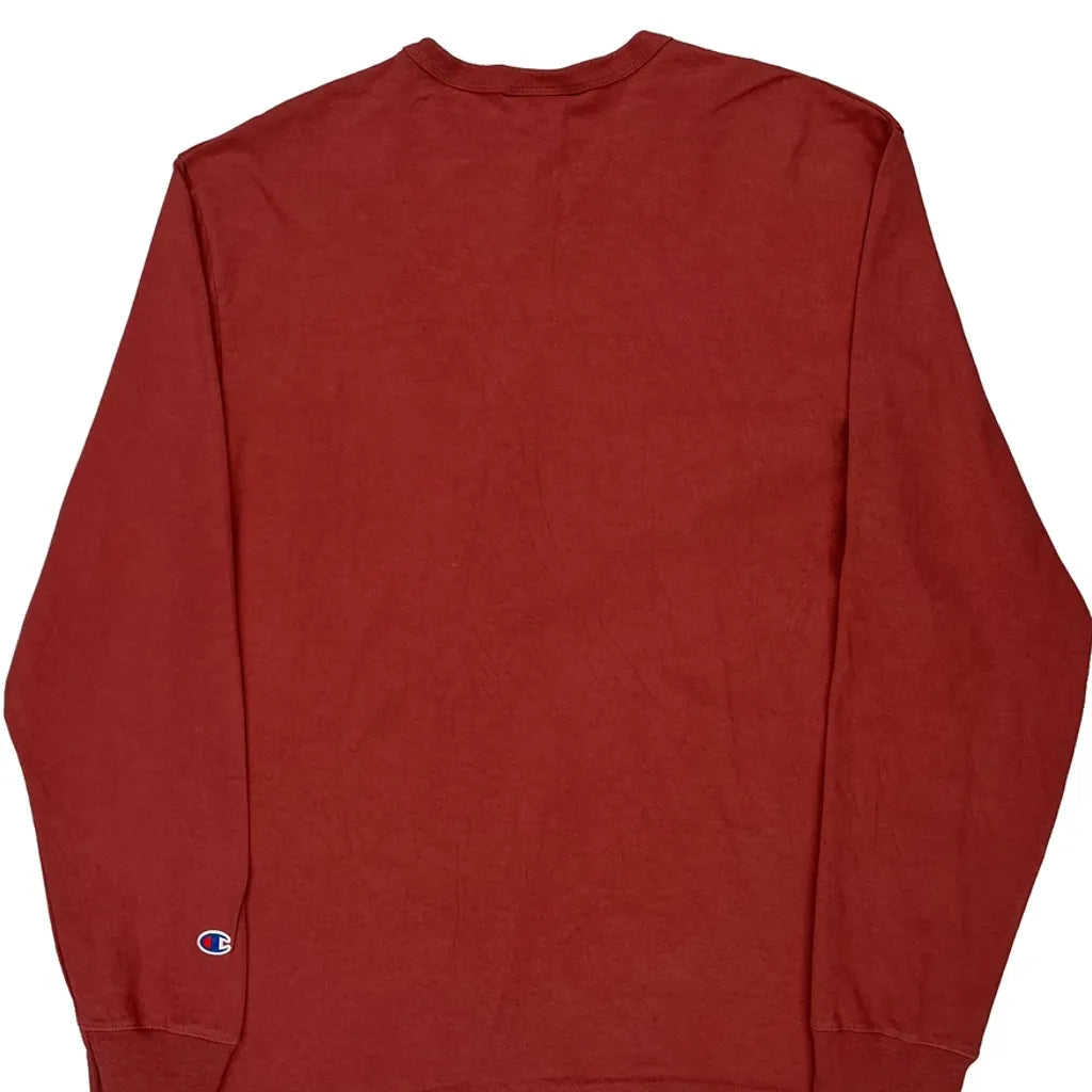 Champion Long Sleeve T-Shirt - Large Red Cotton