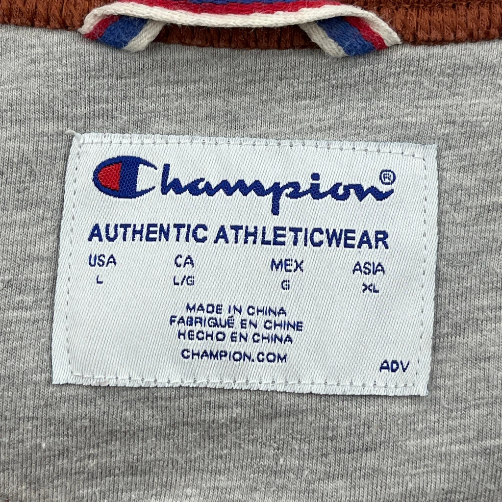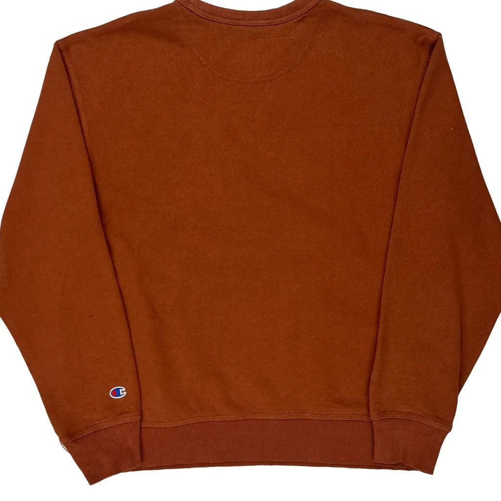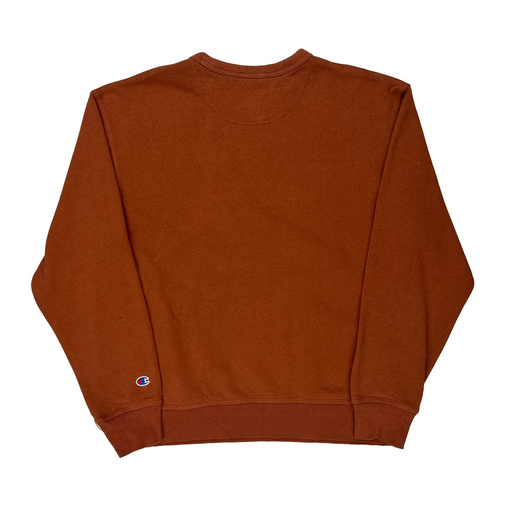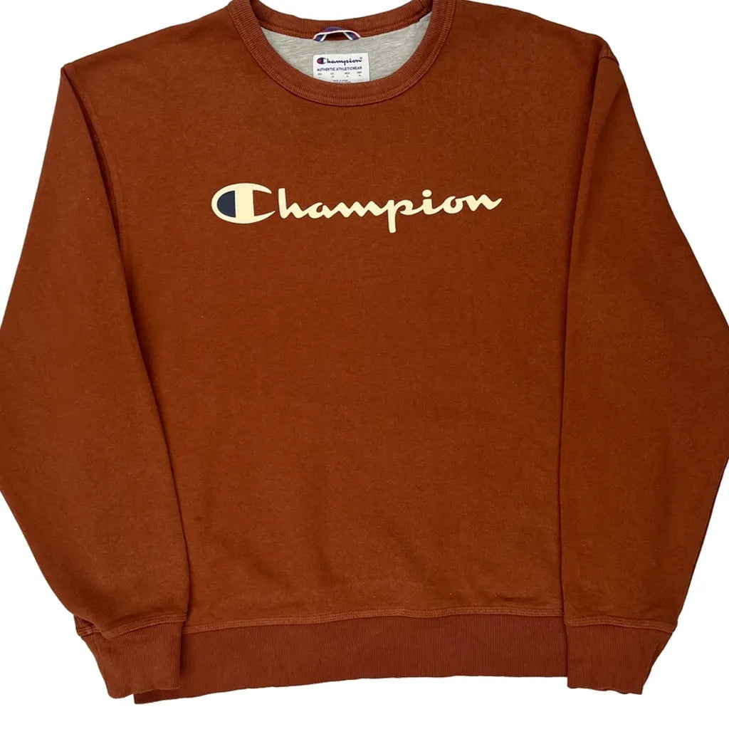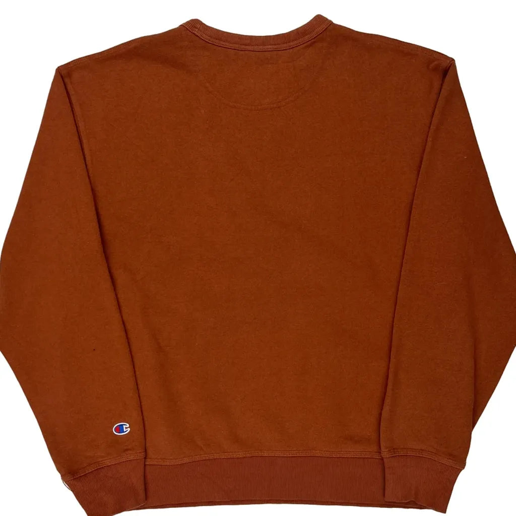 Champion Spellout Sweatshirt - Large Brown Cotton Blend