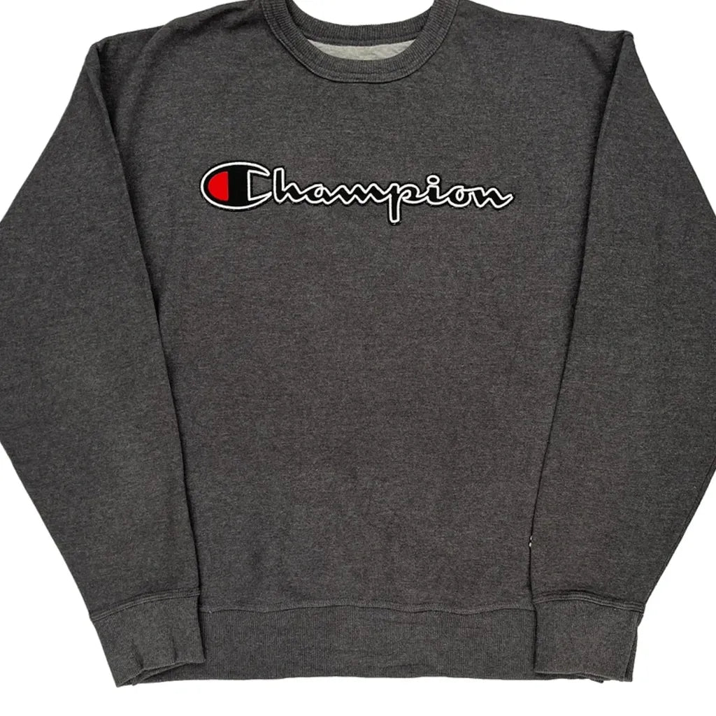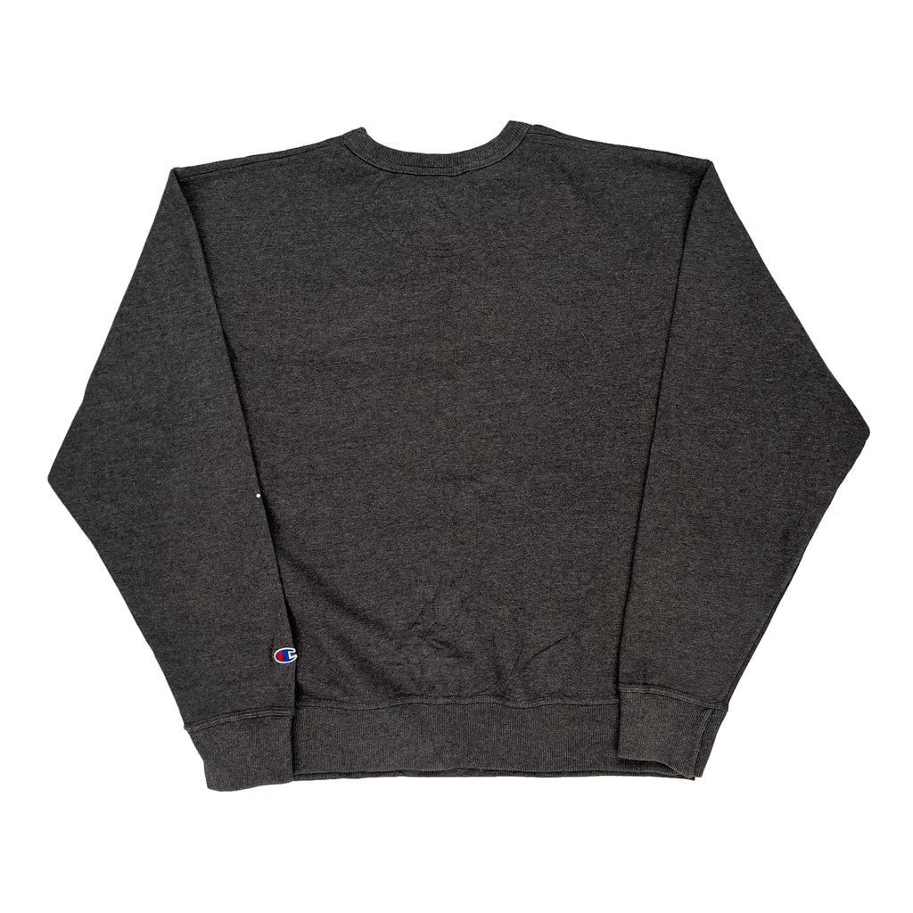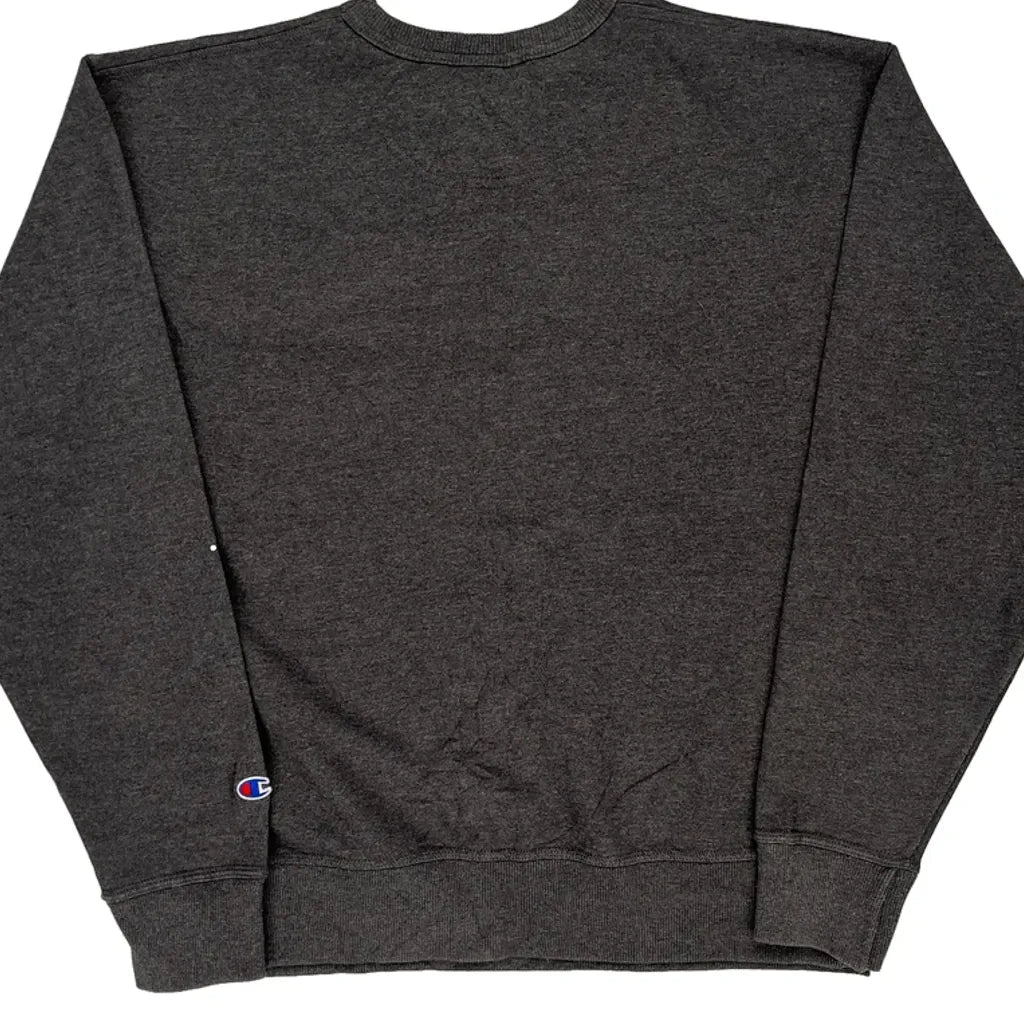 Champion Spellout Sweatshirt - Large Grey Cotton Blend