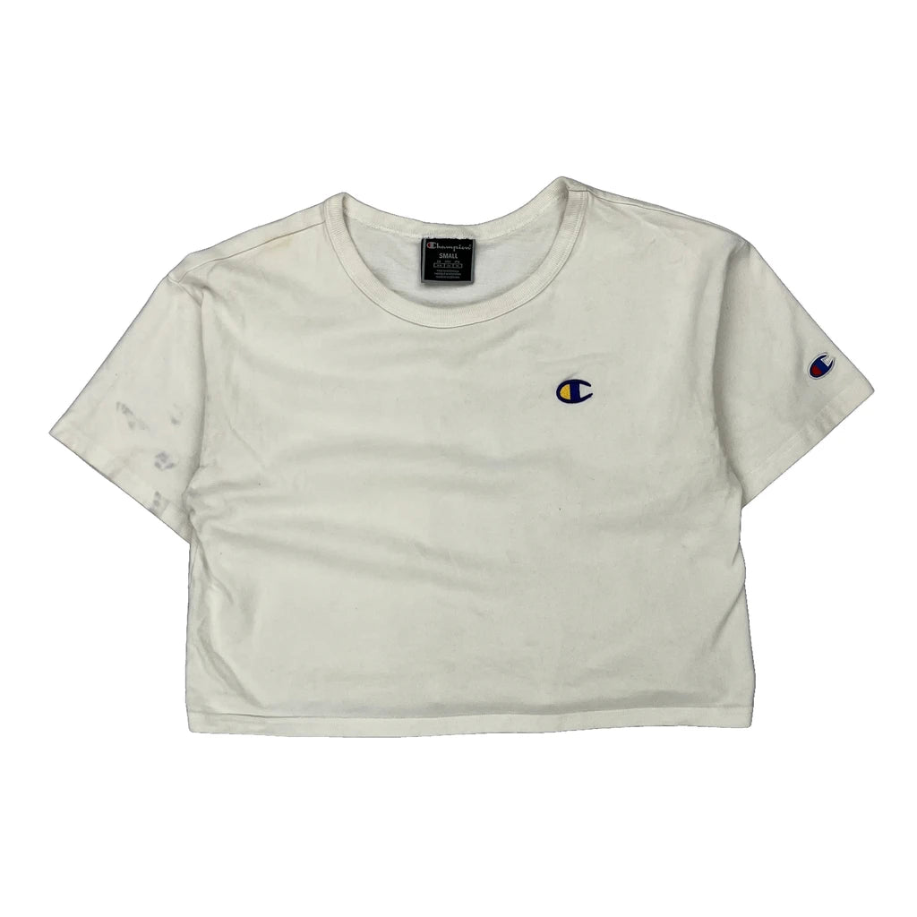 Champion Cropped T-Shirt - Small White Cotton