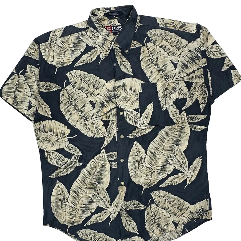 Chaps Ralph Lauren Hawaiian Shirt - Large Black Cotton