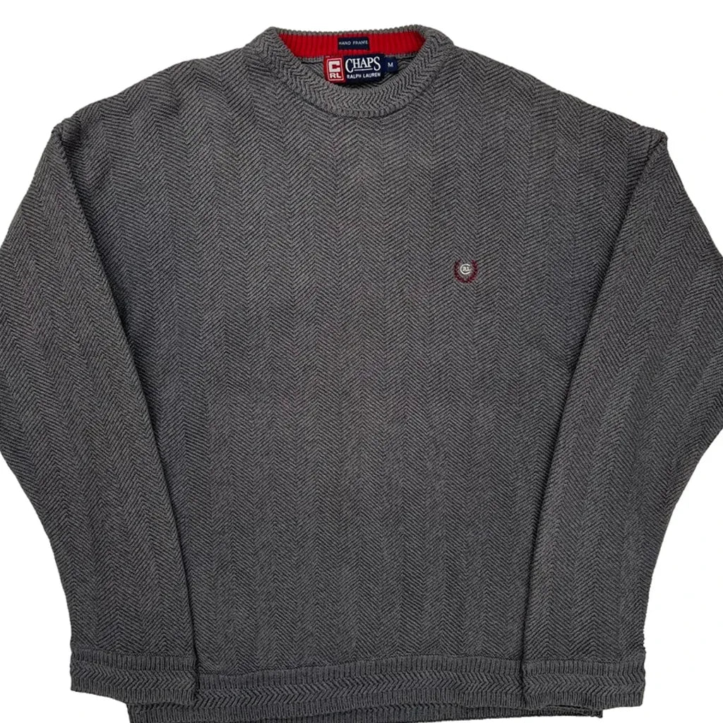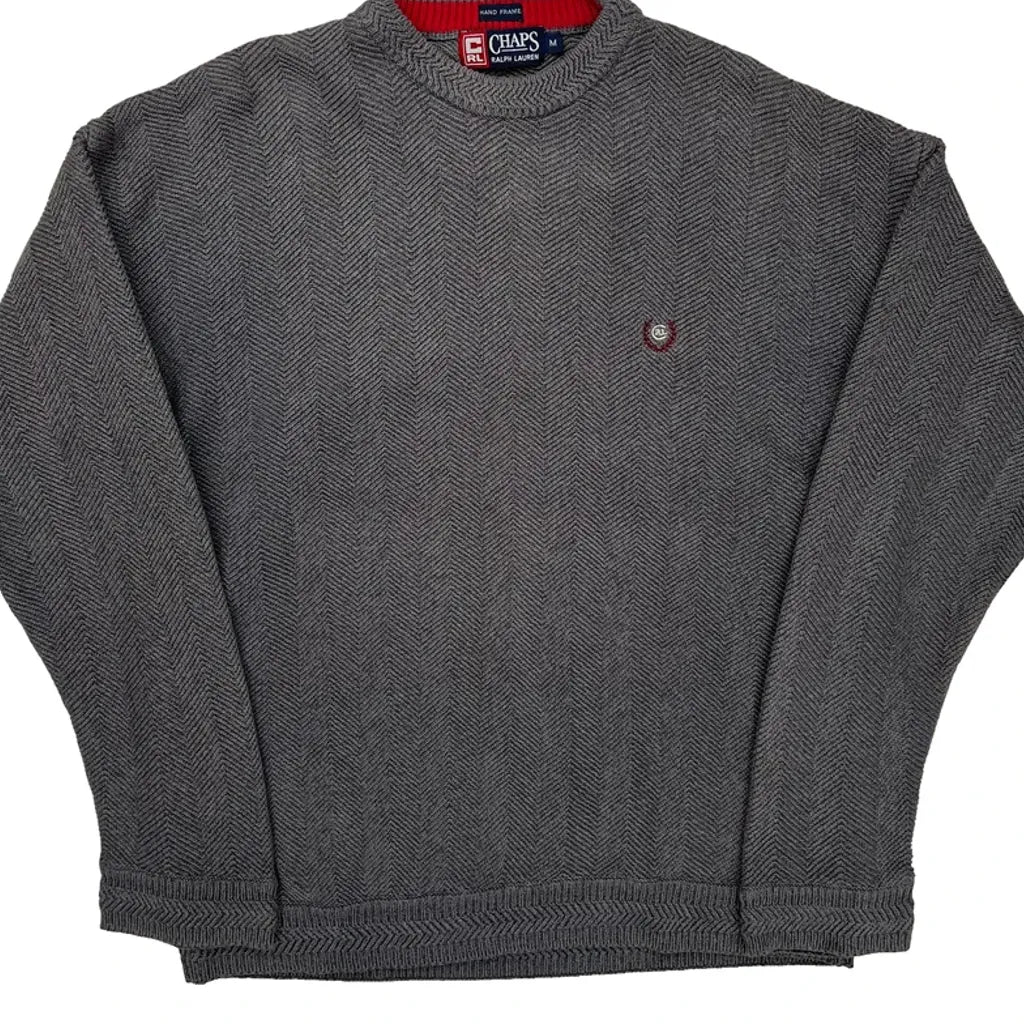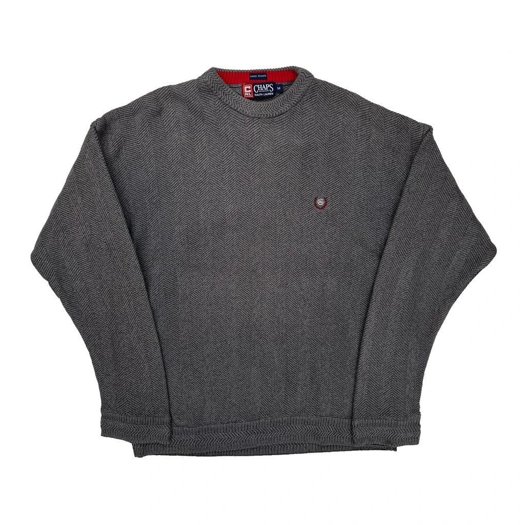 Chaps Ralph Lauren Herringbone Jumper - Medium Grey Cotton