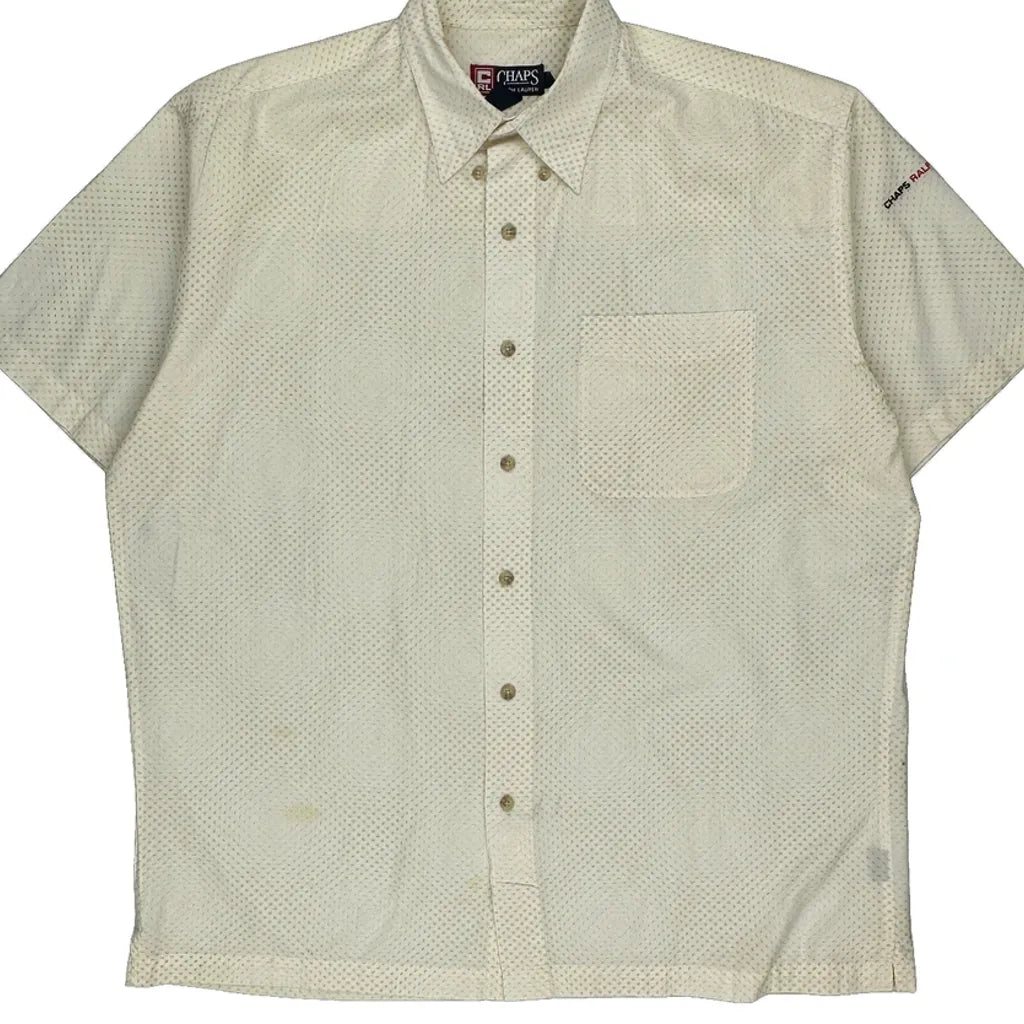 Chaps Ralph Lauren Polka Dot Short Sleeve Shirt - Large Cream Cotton
