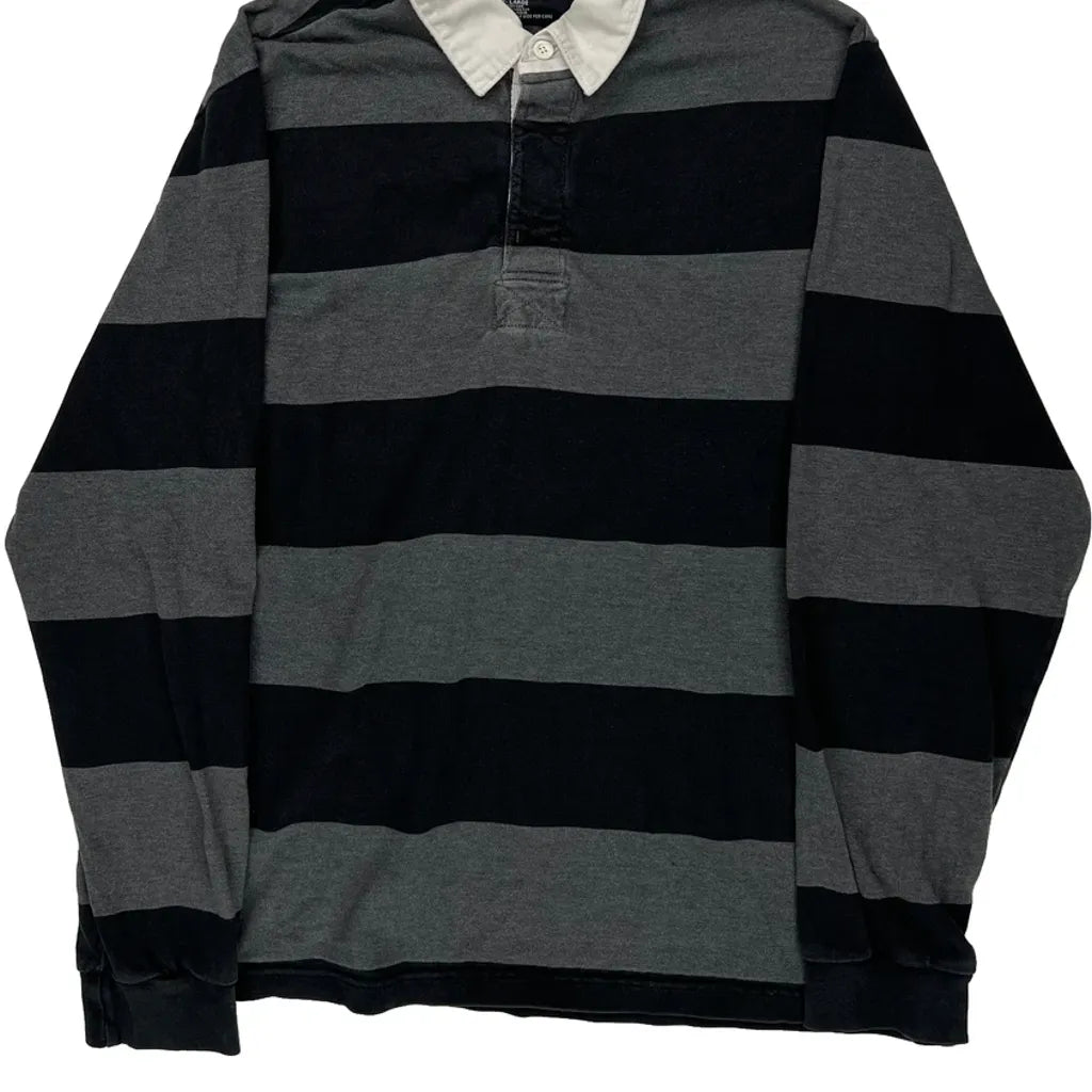 Black And Grey Striped Rugby Shirt With White Collar