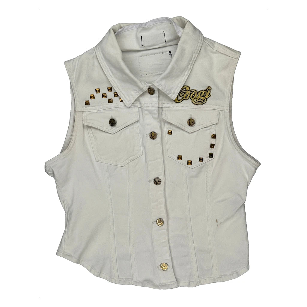 Coogi Studded Denim Gilet - XL White Cotton