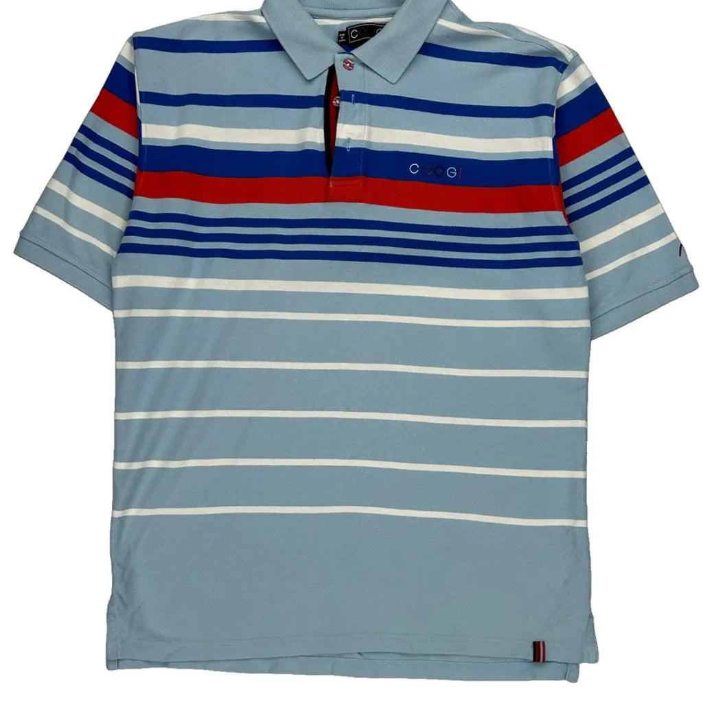Coogi Striped Polo Shirt - XL Blue Cotton