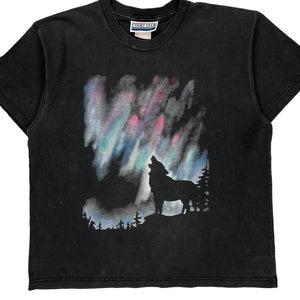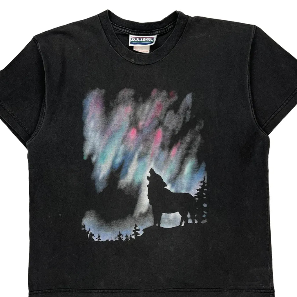 Black T-Shirt With Wolf Graphic And Colorful Background
