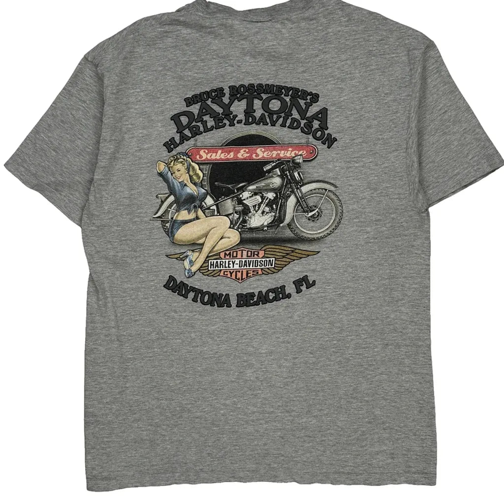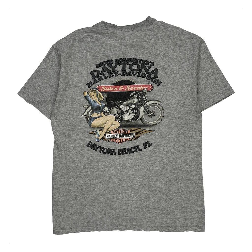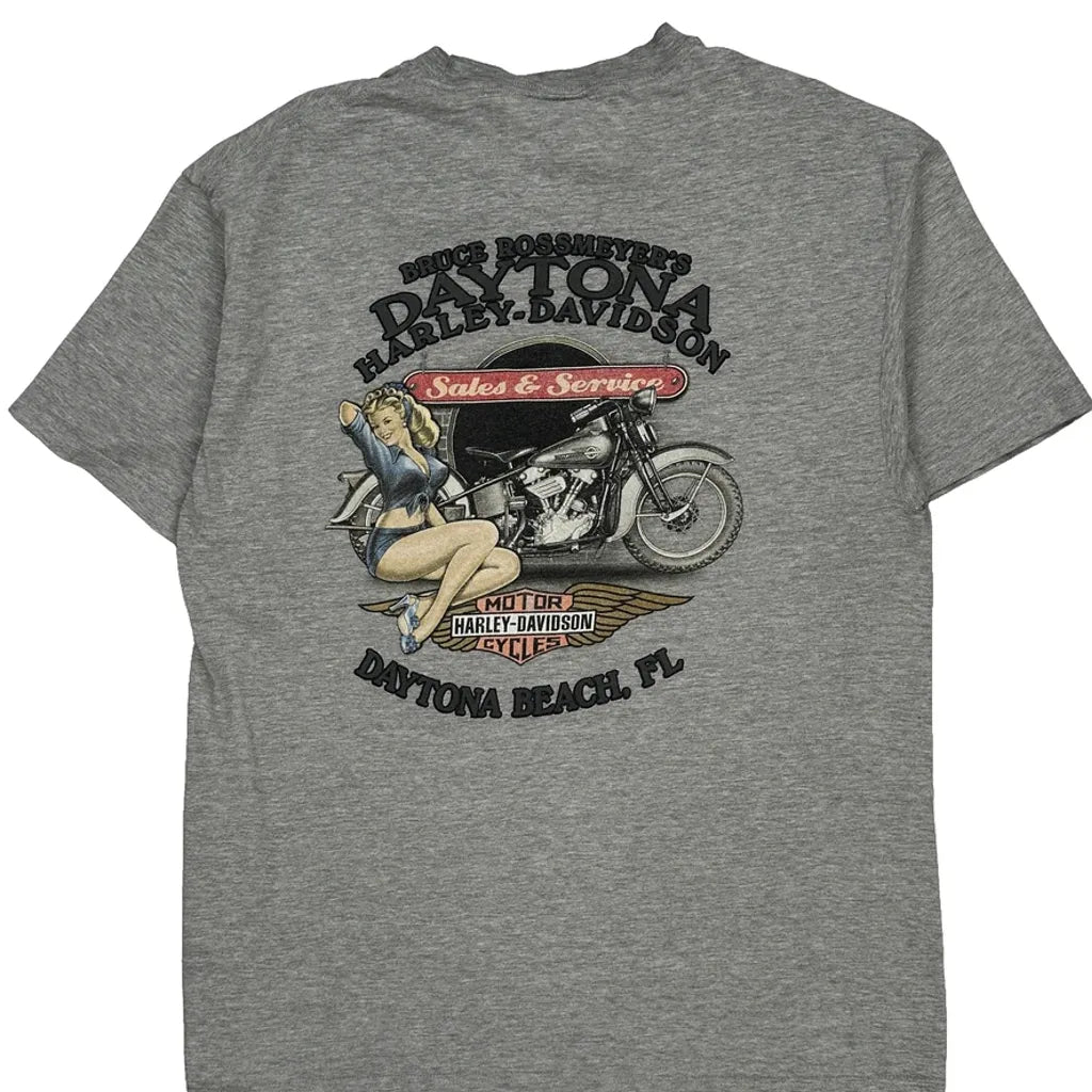 Daytona Beach, Fl Harley Davidson Graphic T-Shirt - Large Grey Cotton