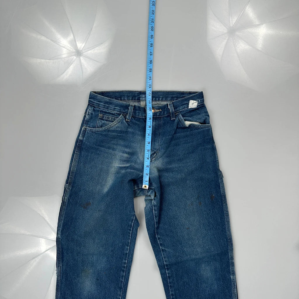 Dickies Carpenter Jeans, fit a 28″ Waist and 32″ inseam.