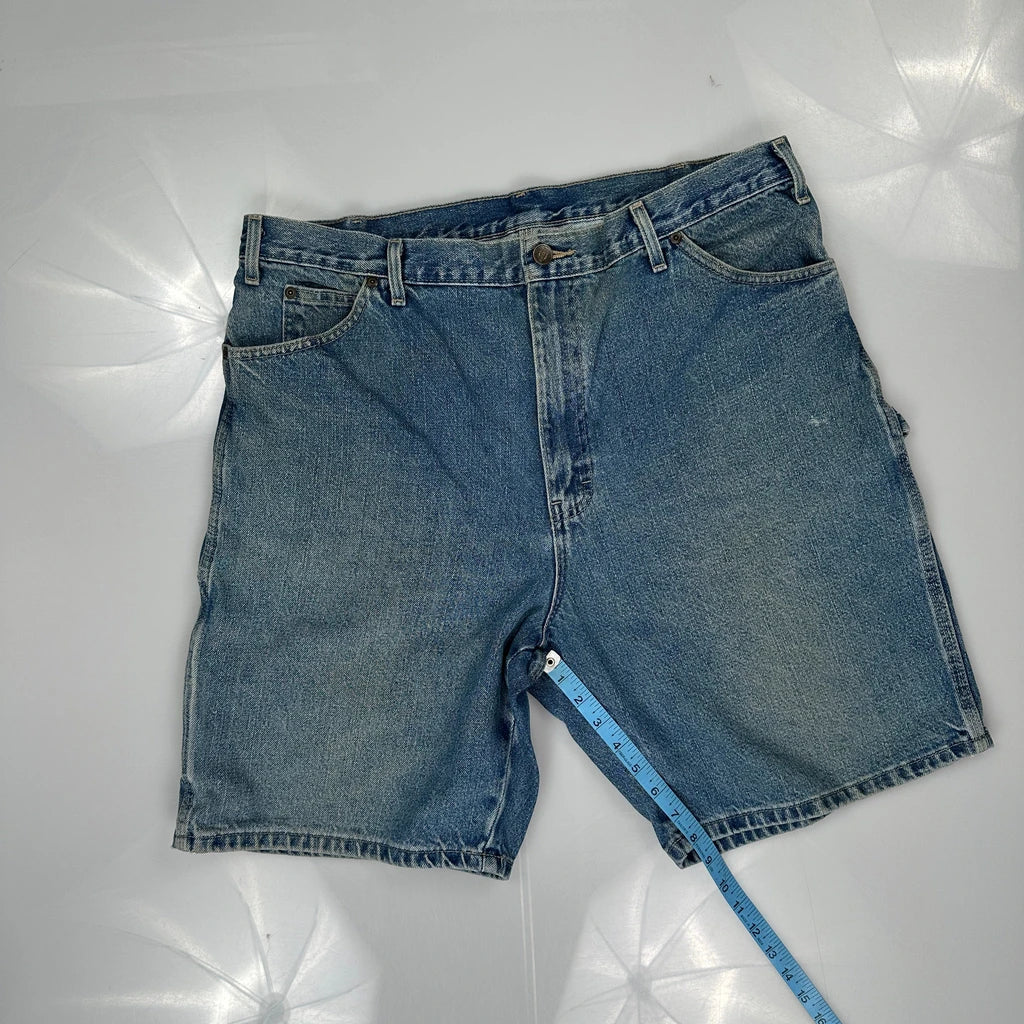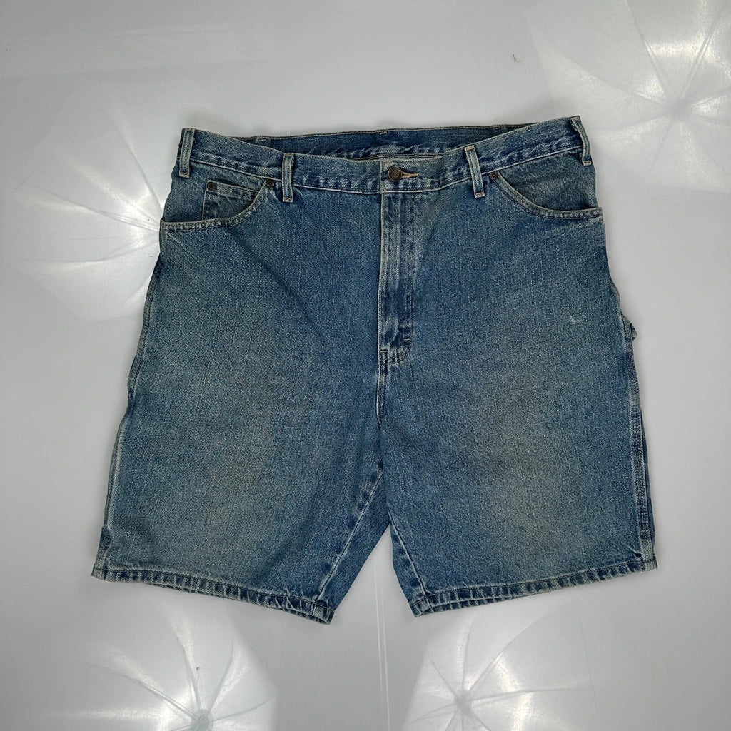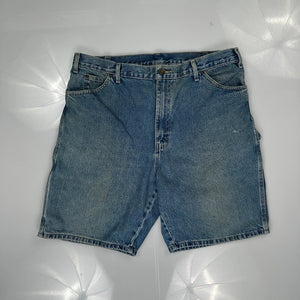 Dickies Denim Shorts, fit a 36″ Waist and 8″ inseam.