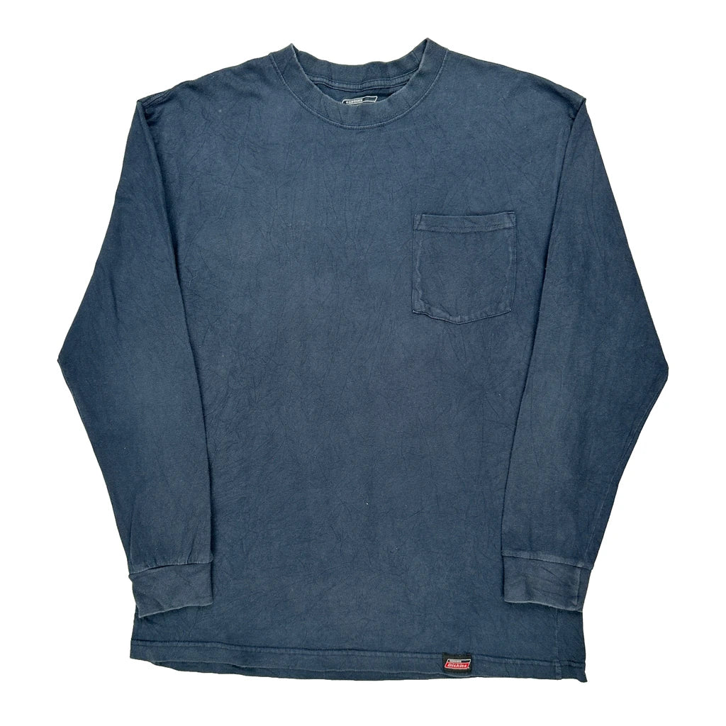 Dickies Long Sleeve T-Shirt - Large Blue Cotton