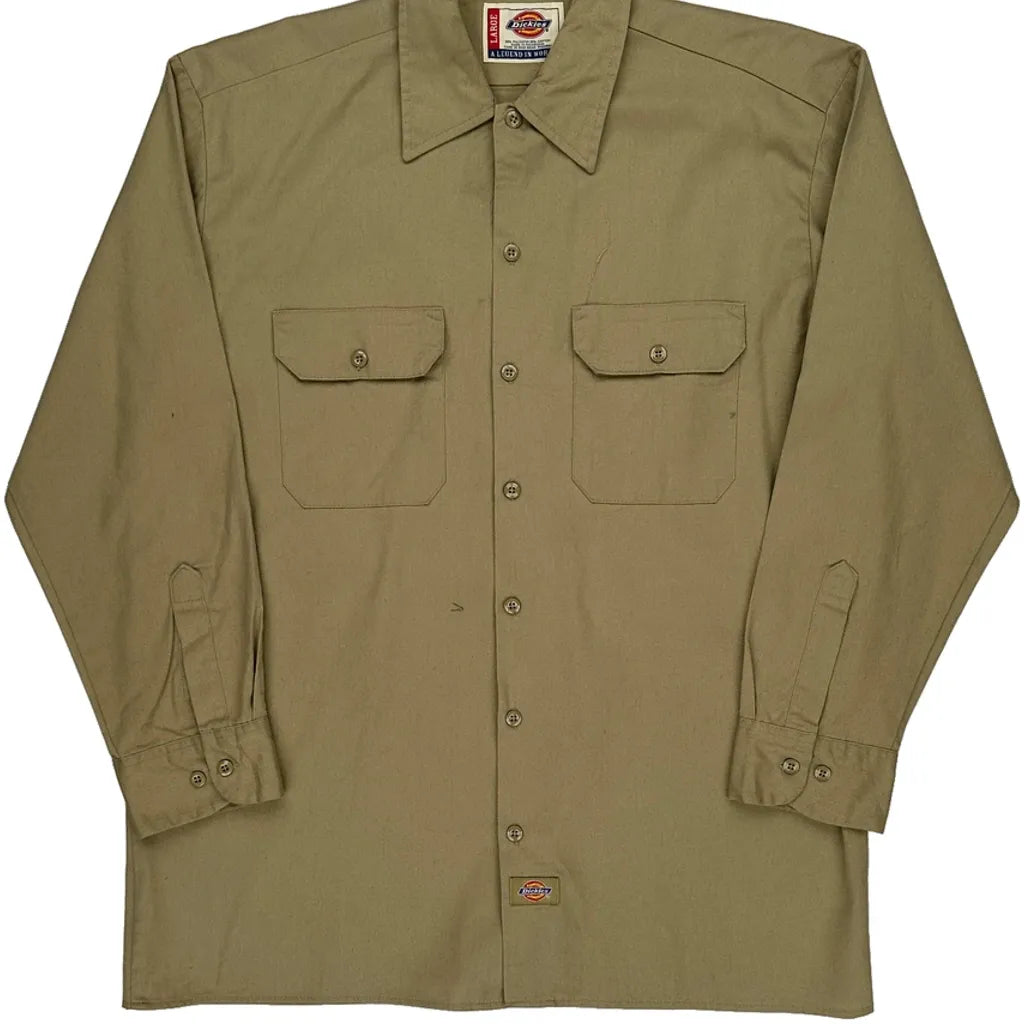 Dickies Shirt - Large Khaki Polyester Blend