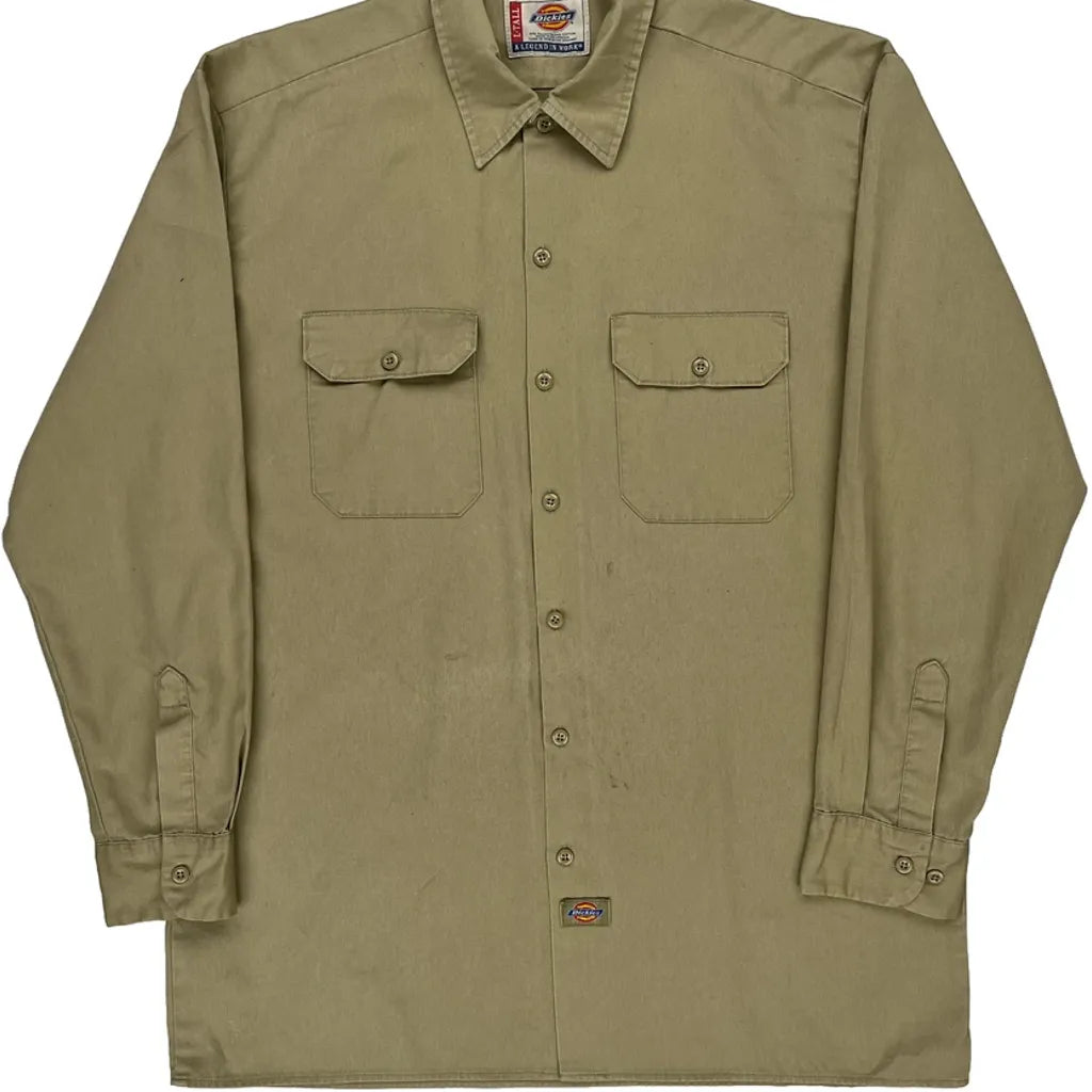 Dickies Shirt - Large Khaki Polyester Blend