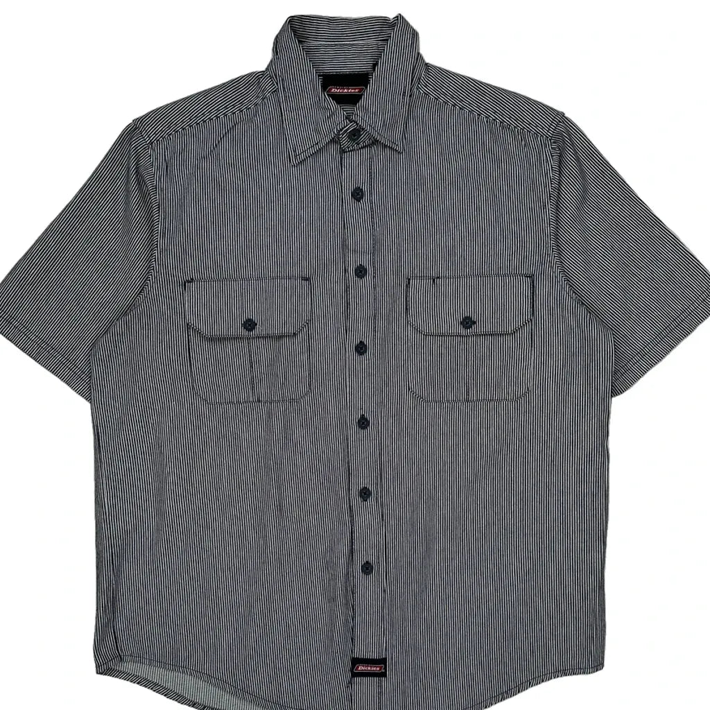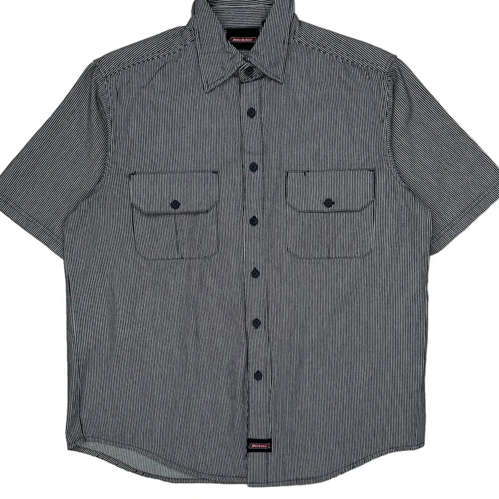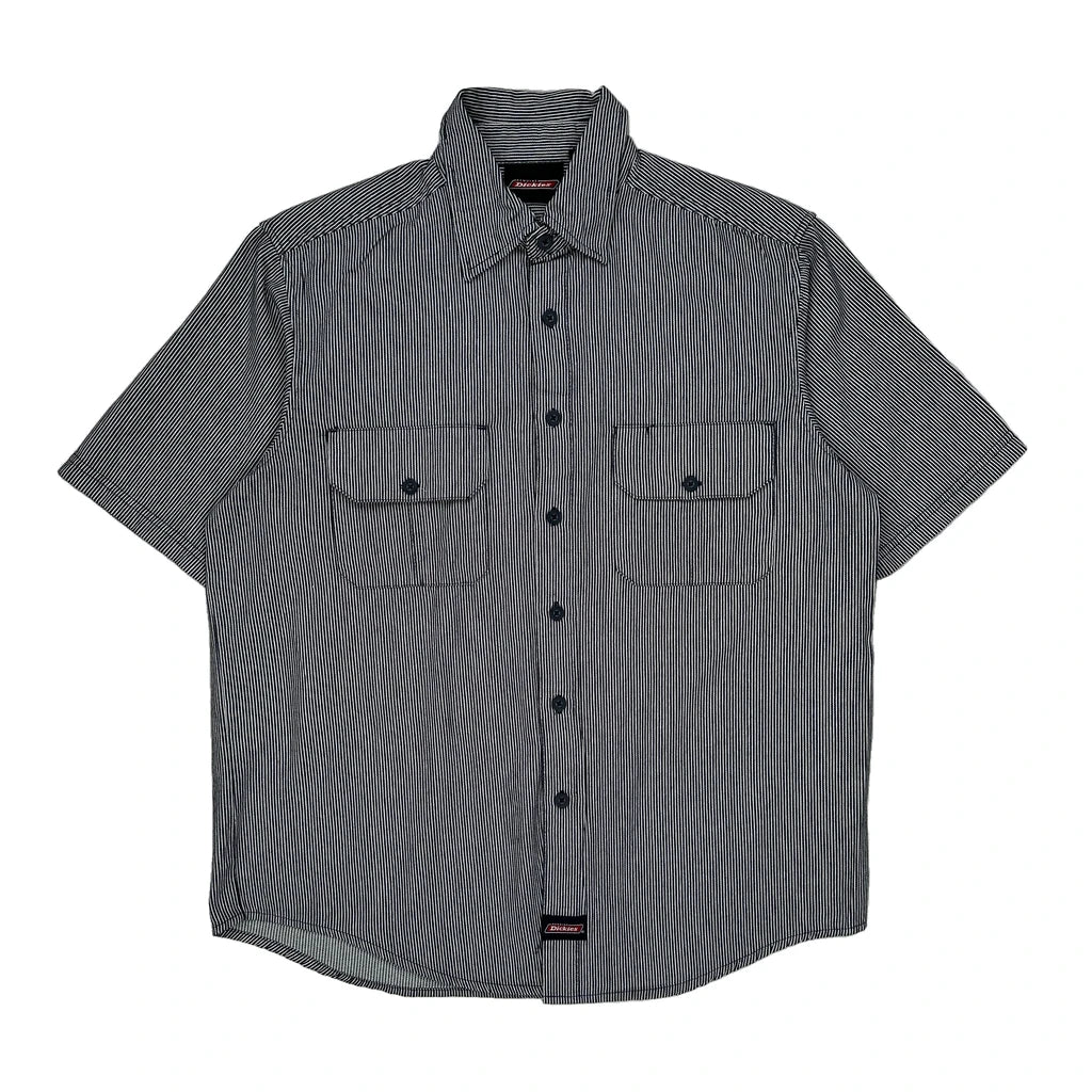 Dickies Striped Short Sleeve Shirt - Large Black & White Cotton