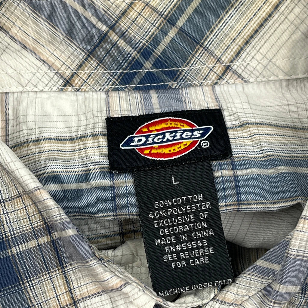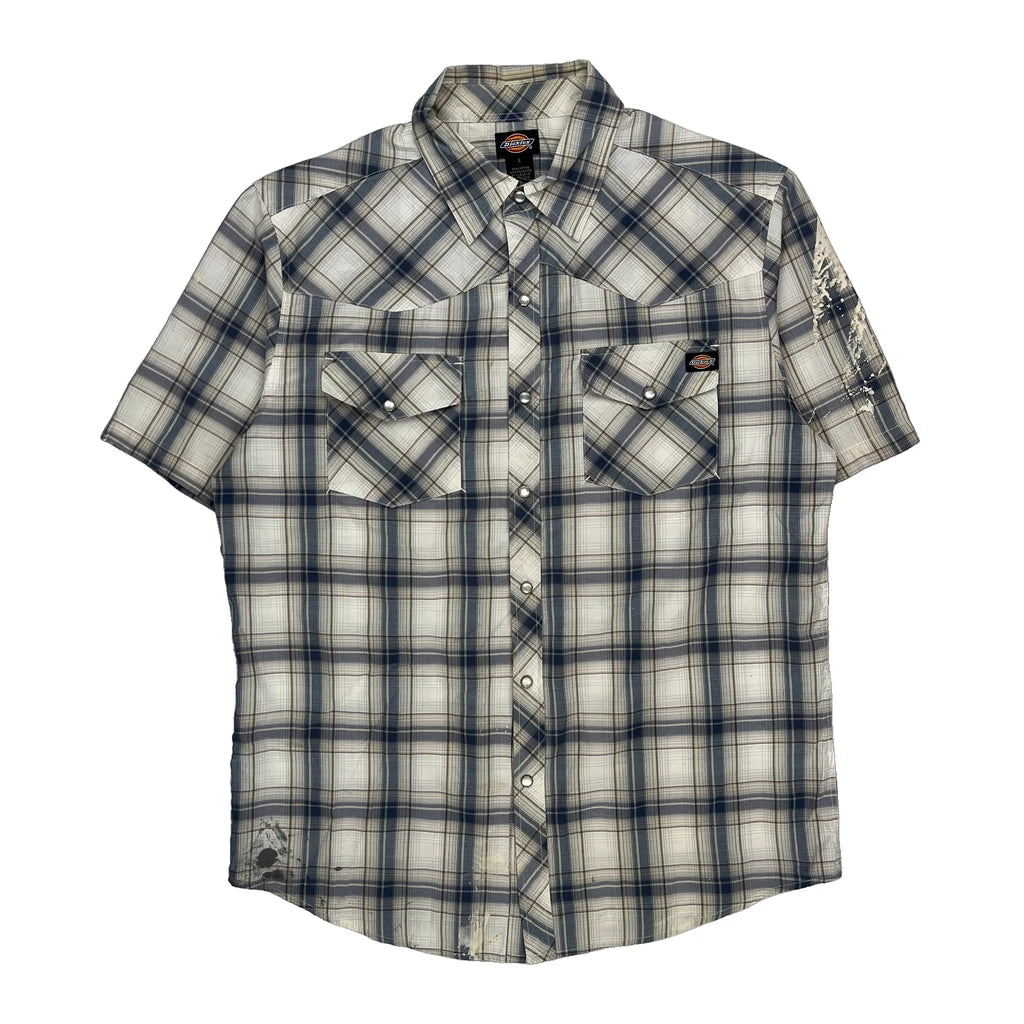 Dickies Checked Short Sleeve Shirt - Large Blue Cotton Blend