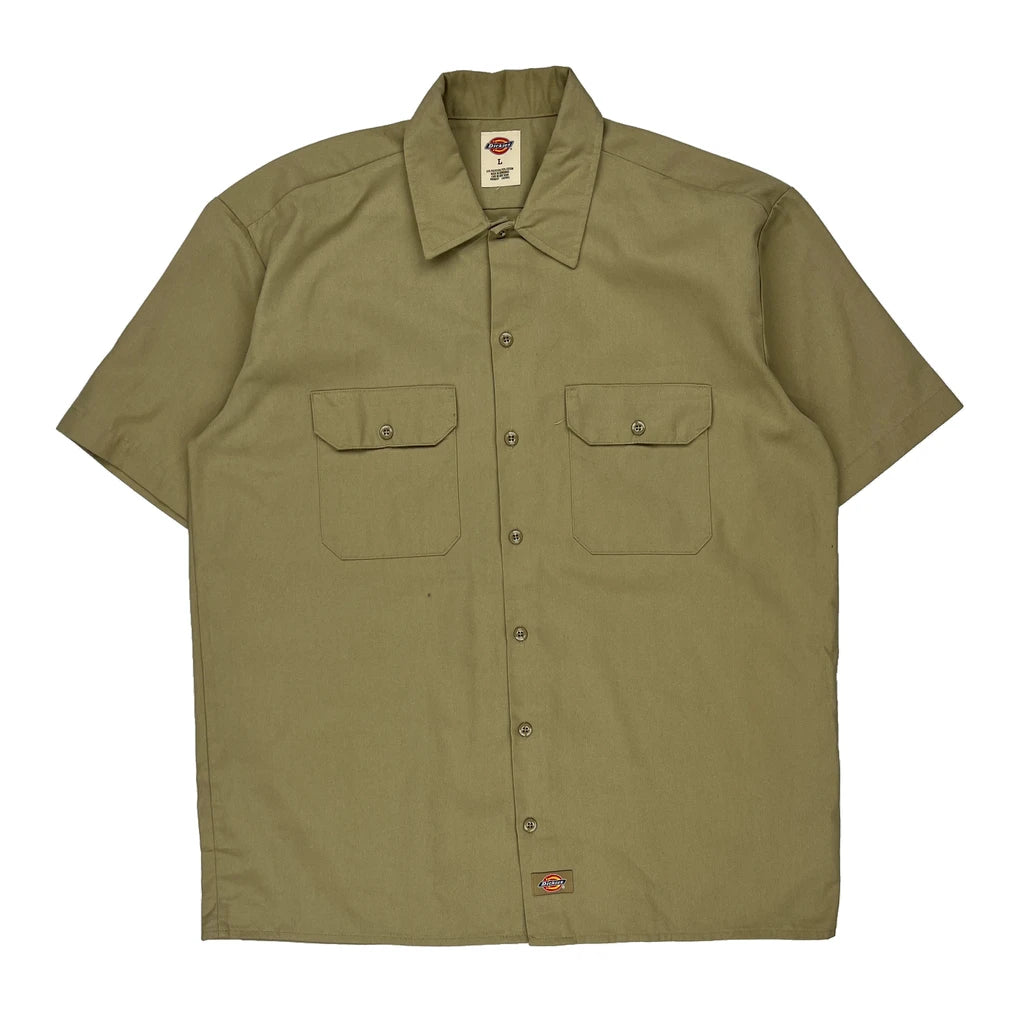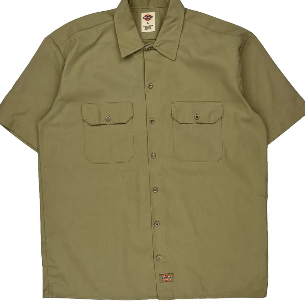 Dickies Short Sleeve Shirt - Large Khaki Polyester Blend