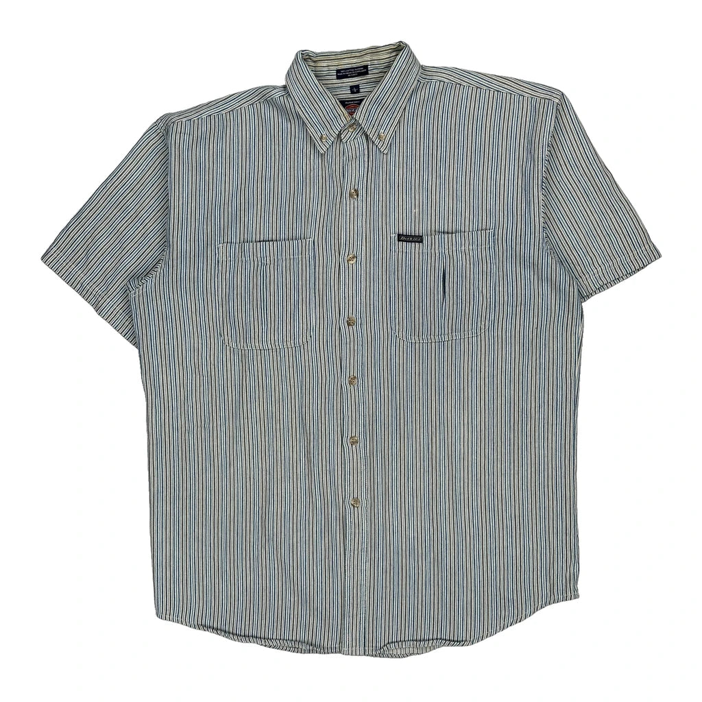 Dickies Striped Short Sleeve Shirt - Large White Cotton