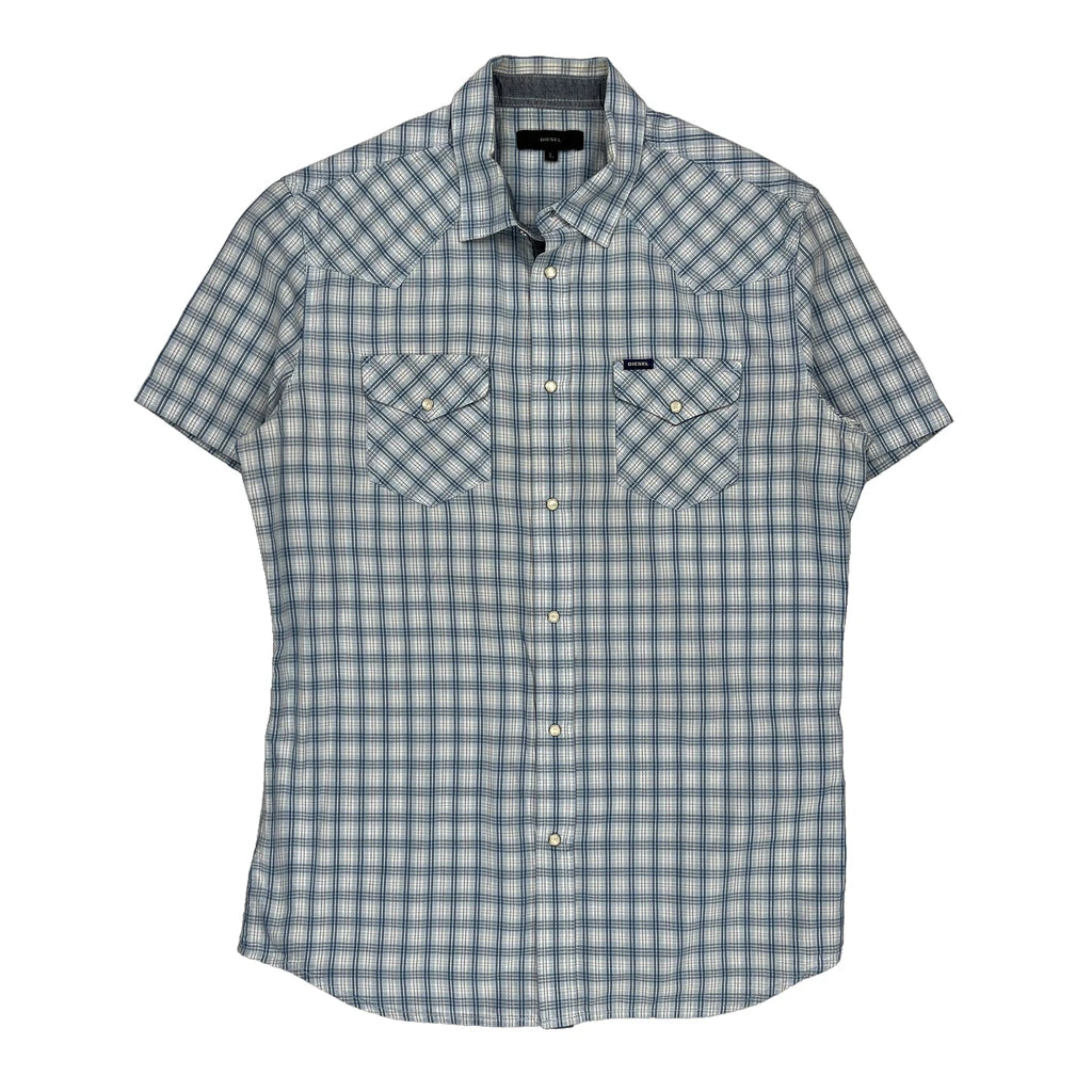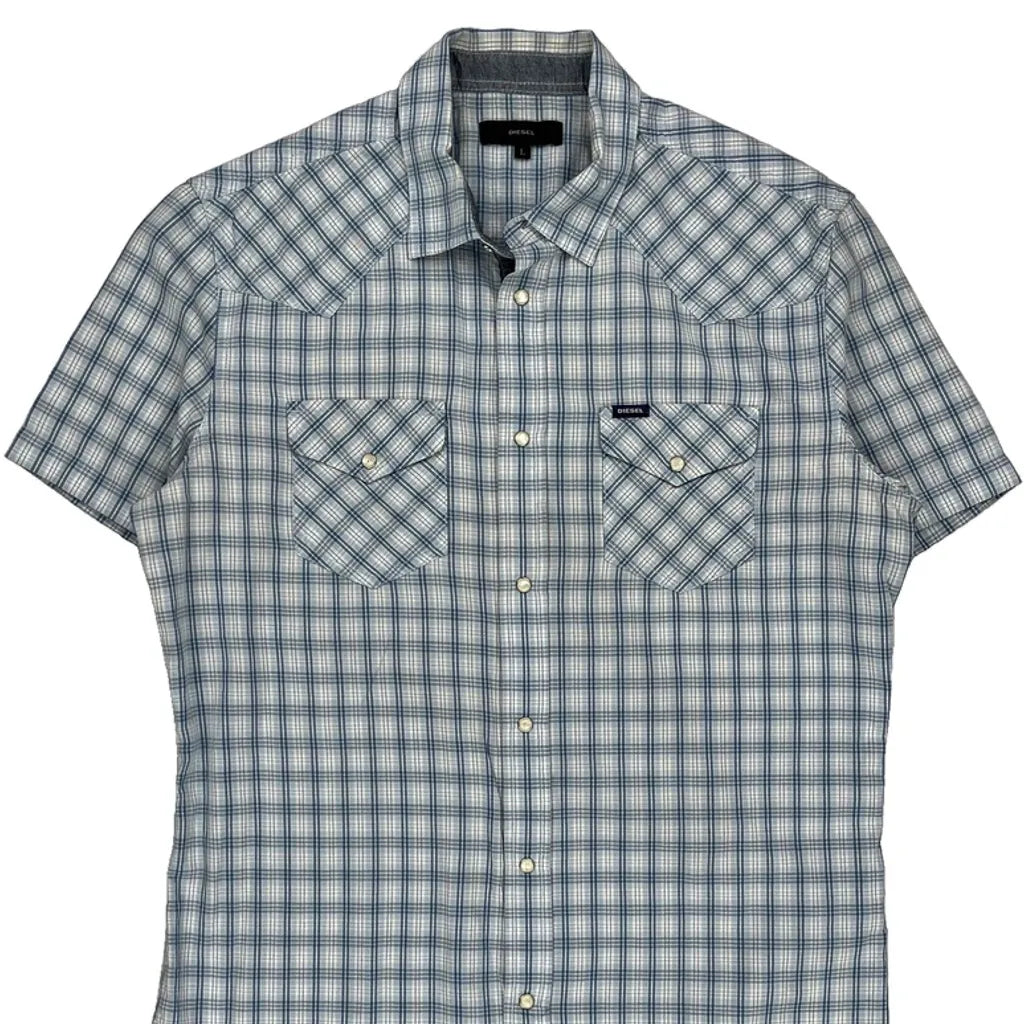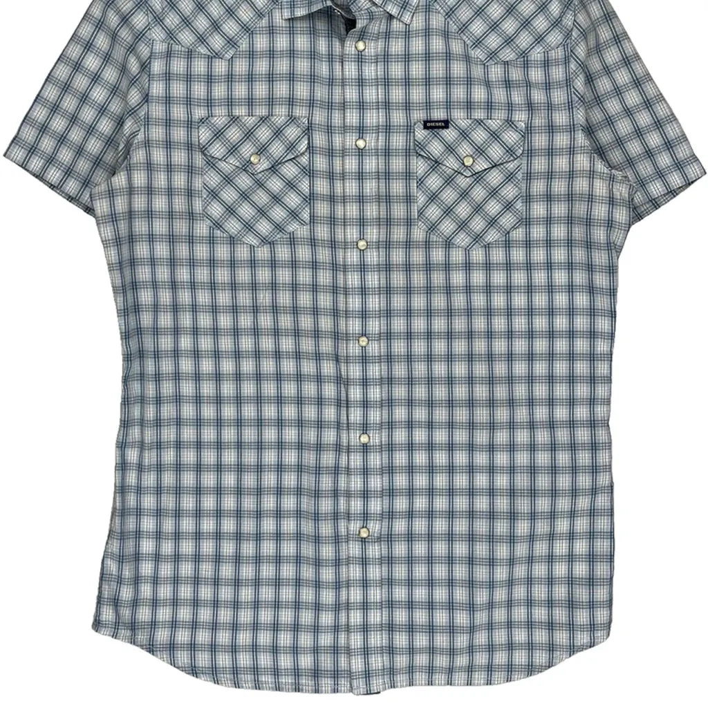 Diesel Checked Short Sleeve Shirt - Large Blue Cotton